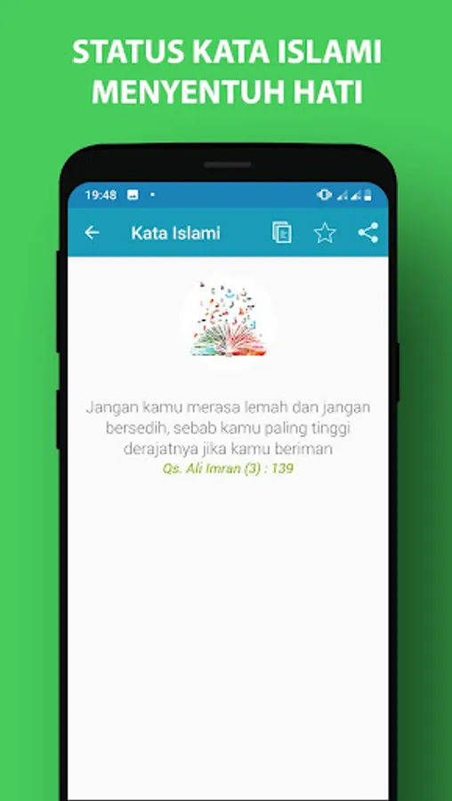 When you reflect on your mistakes and feel down, motivated and wise attitude is needed. This application contains a collection of Islamic wise words of wisdom that touch the heart. You can choose Islamic pearls of wisdom that touch your feelings. The Islamic words you choose can be your WA status or share them on your social media.