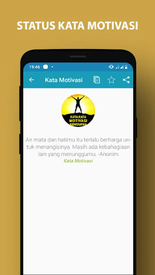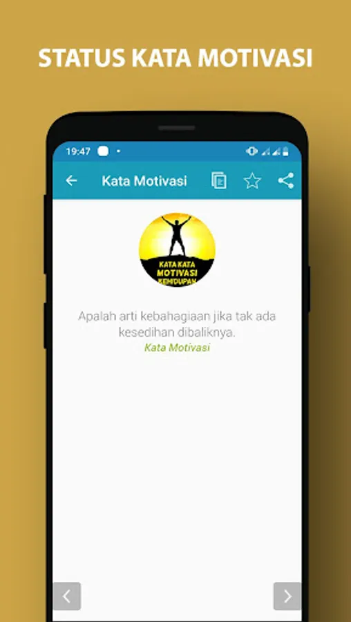 Because this application provides a variety of motivational words of life motivation. You can make your motivational words WA or share them to your social networks. Collection of pearls of life will also be updated every day so no need to worry bored.