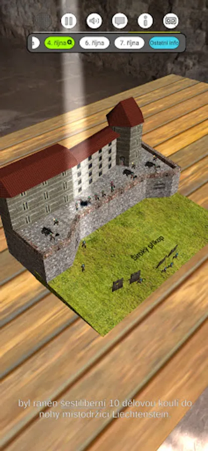 The application shows a scenario of a battle during the 1930s war, when Sovinec Castle was attacked by Swedish troops. The model of the castle can be placed in space in augmented reality and then approached it in various ways and enjoy the individual days of conquest.