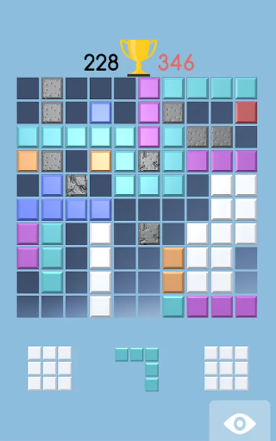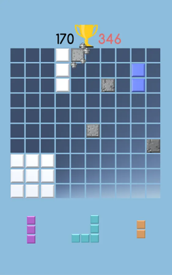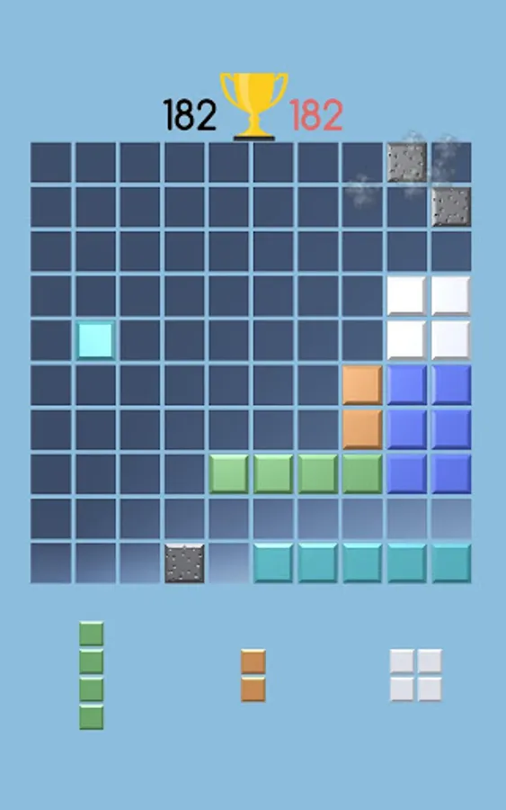 Your mission is to drag & drop the shapes in order to fill up and destroy rows and columns.