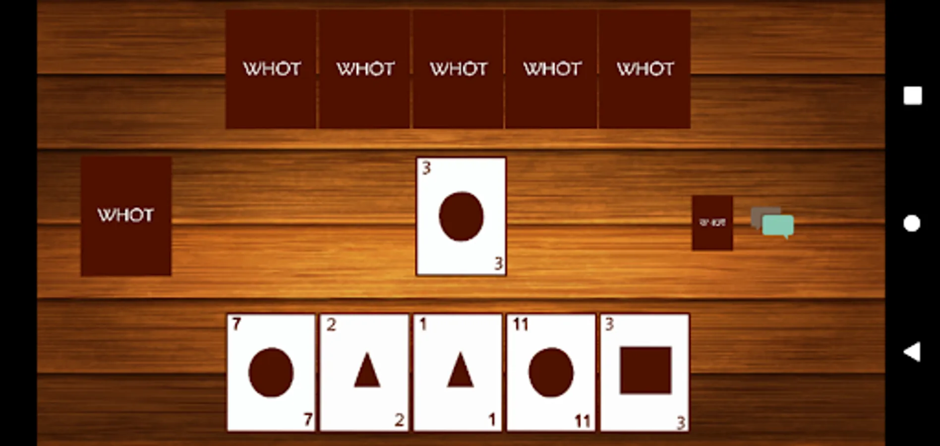 Whot is an intriguing and fun card game. Two players play against each other, the person who firsts drop all his cards wins the round. In whot a player can decide to play against a computer controlled opponent or simply play against a friend in multiplayer mode. So with whot you can have fun with your friends.