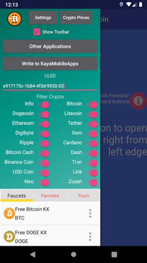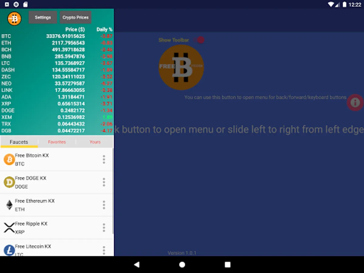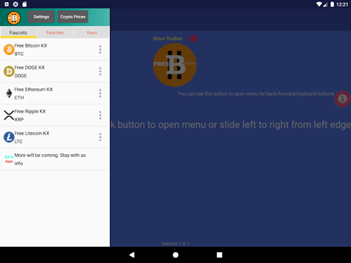 - Bitcoin (BTC), dogecoin (DOGE), litecoin (LTC), Ripple (XRP), Ethereum (ETH), SHIB faucets in one application. And more other coins. Some of them will be added later on.