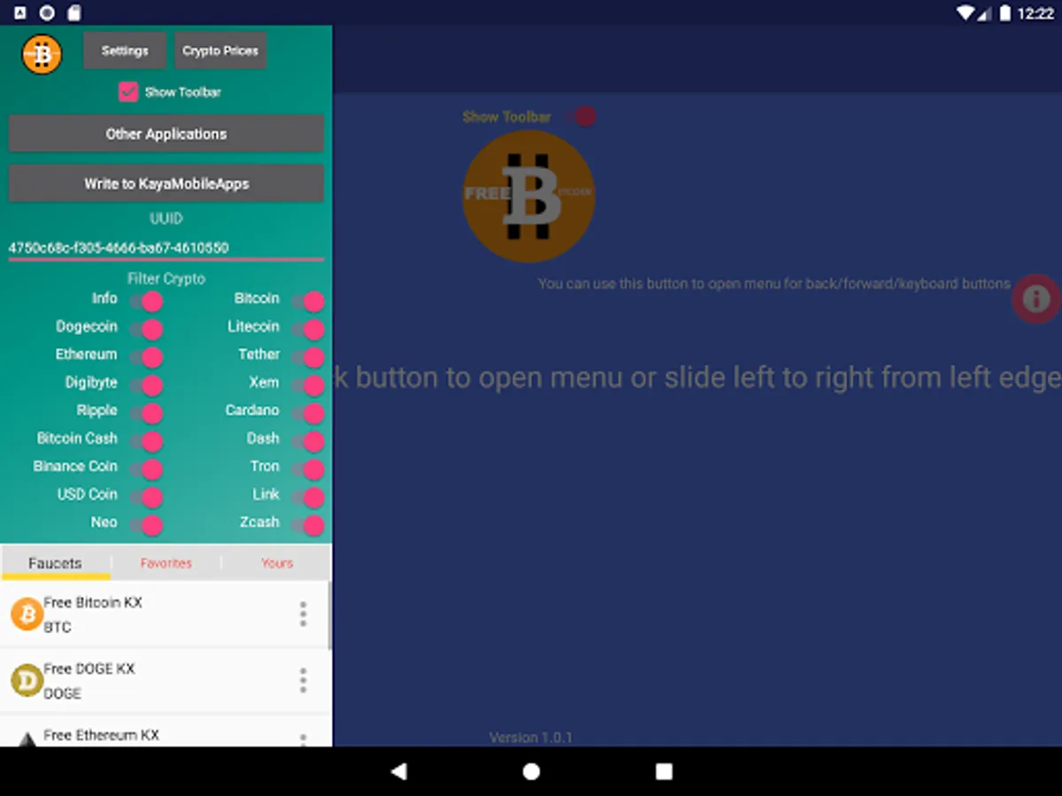- Currently Doge, Bitcoin, Ripple, Ethereum and Litecoin, SHIBA faucets are available. Dash, NEM, Cardano, Bitcoin Cash, Tether, Usdcoin, faucets will be added.