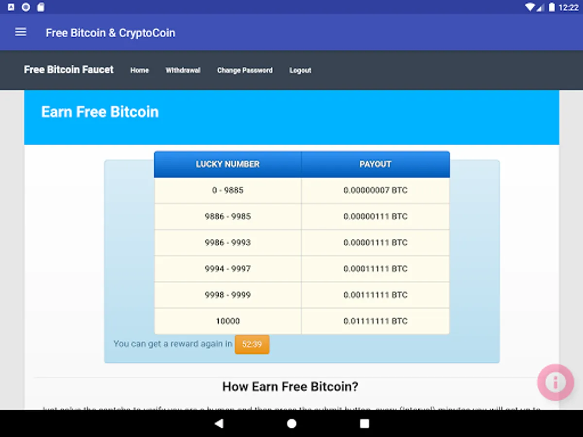 - Earn every hour free Bitcoin up to 0.01 BTC and minimum 12 satoshi and more ...