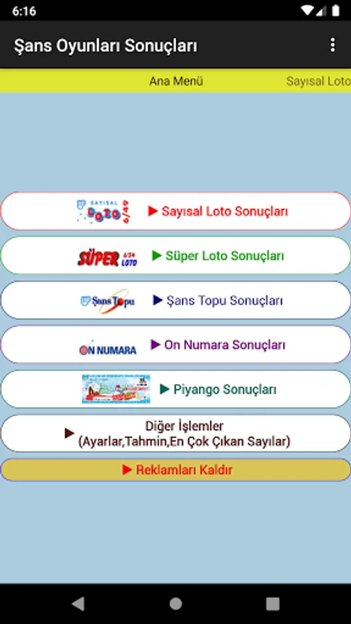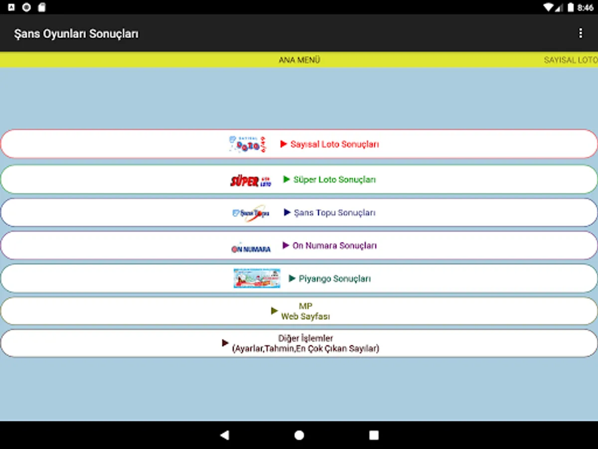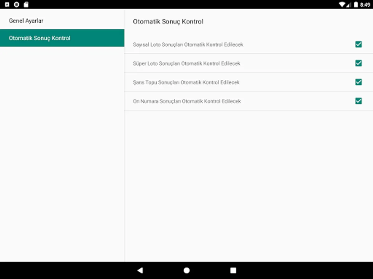 - Querying Automatic Lotto Results (After pressing the menu button, the service must be activated from the settings section and the lottery results that you want to query automatically must be selected.)