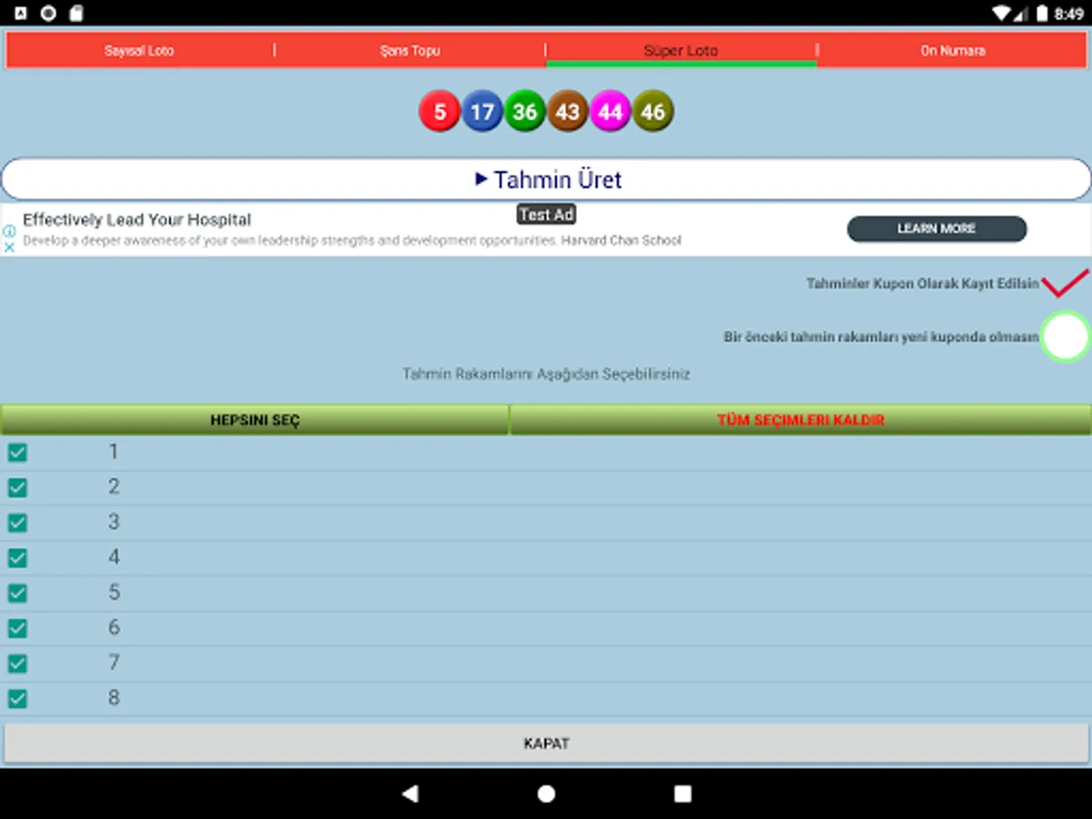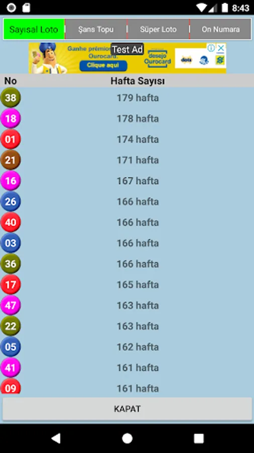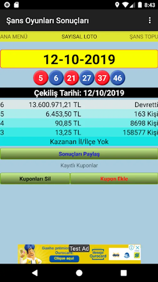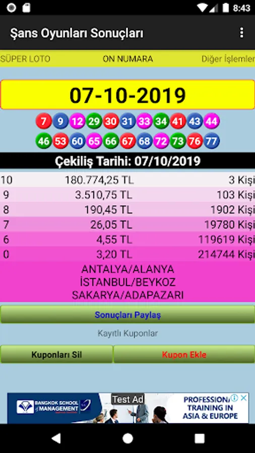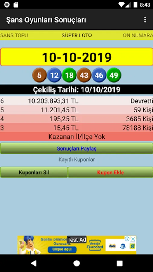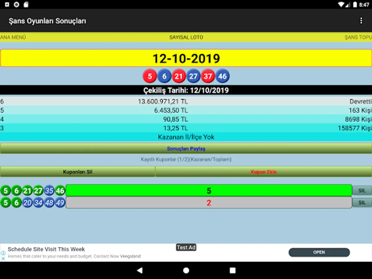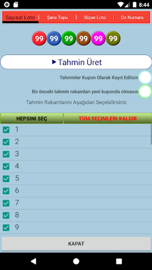 Our app is up to date with the results of all new games. With our application, you can check the results of Super Lotto, Chance Ball, Numerical Lotto, Number Ten, Lottery, learn the most popular numbers, create new predictions and save coupons. The holding amount of the coupons you have registered will be automatically calculated for the week you selected. You can also check the result status of your old deleted coupons from within the application. You can also check whether you have won an award by scanning the coupon QR code or using the ticket number at the bottom of the ticket.