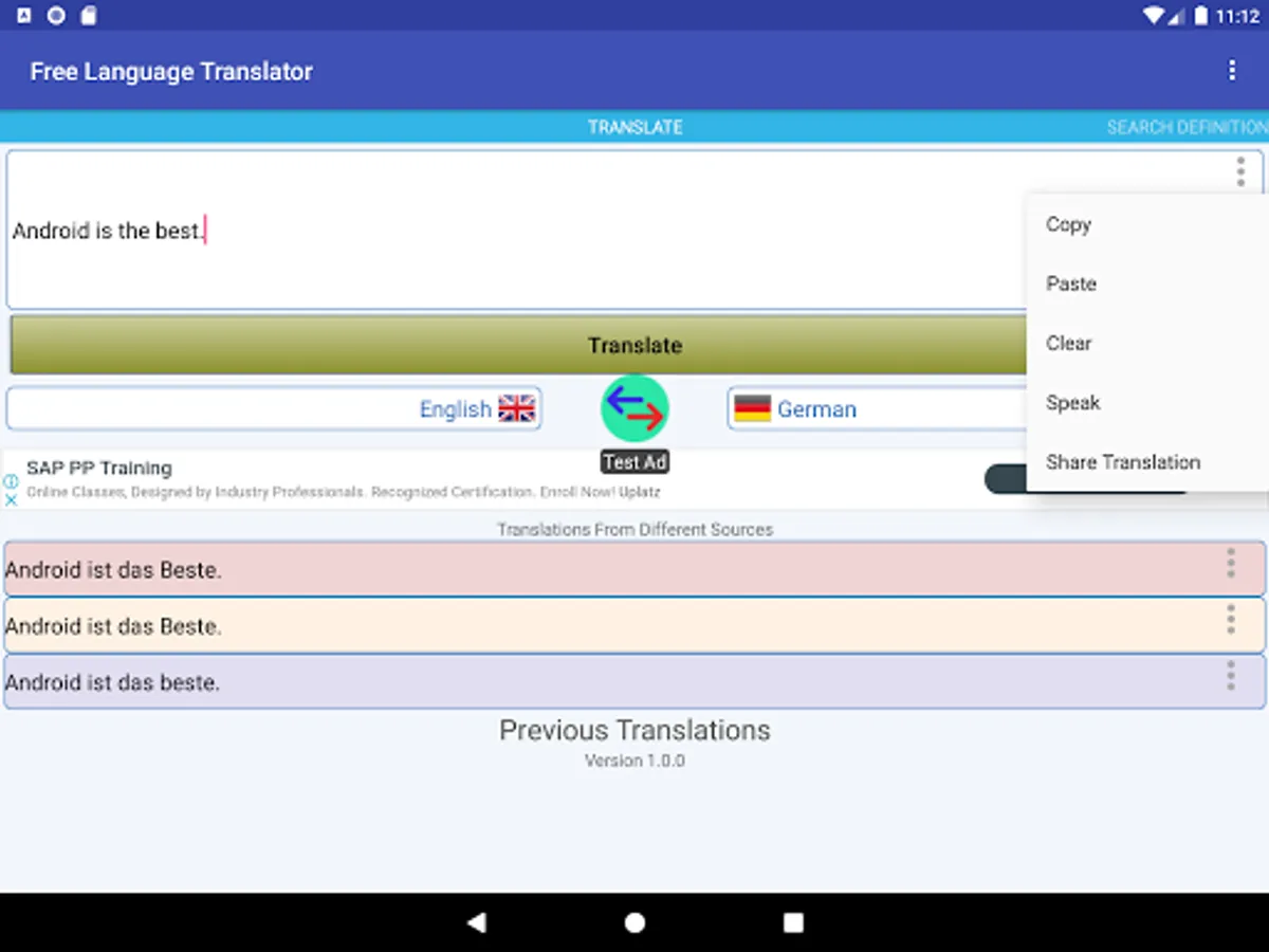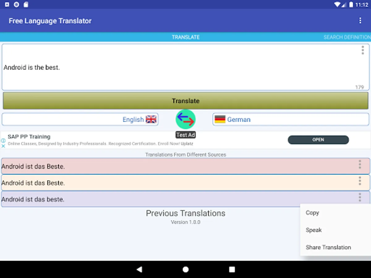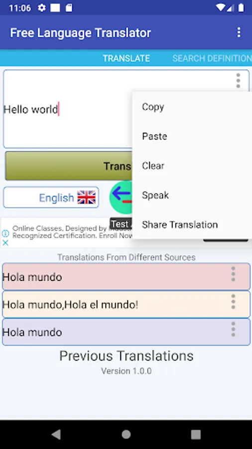 Free language translator of 90 different languages around world. Provides translations more than 2 sources at the same time.