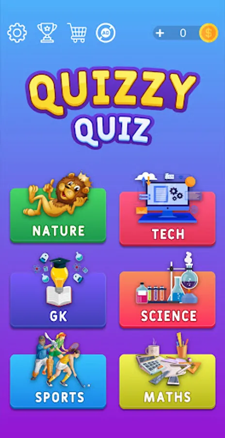 The Quizzy quiz game has many levels to play. This Trivia game has colorful and modern ui. Each level have 5 quiz questions. Answer the Quiz questions. This Trivia game is free to play. This Trivia game also an offline Trivia Quiz game. You can improve your knowledge using quiz game. There is a hint available on this game that is useful to identify the correct answer. The shop system is available in this Trivia game. There is a lot of quiz question answers in the trivia game. Earn coins for correct answers and spend them on hints for the most challenging questions