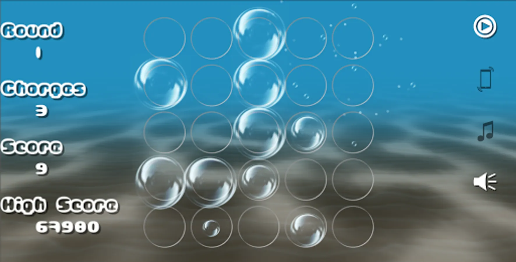 Friendly for all ages, Poppix features 3 primary game modes: easy, medium, and hard, where the sizes of bubbles and numbers of starting charges are varied-- and kiddie - where no score is kept and players can pop bubbles for fun or just watch as they inflate and burst themselves.
