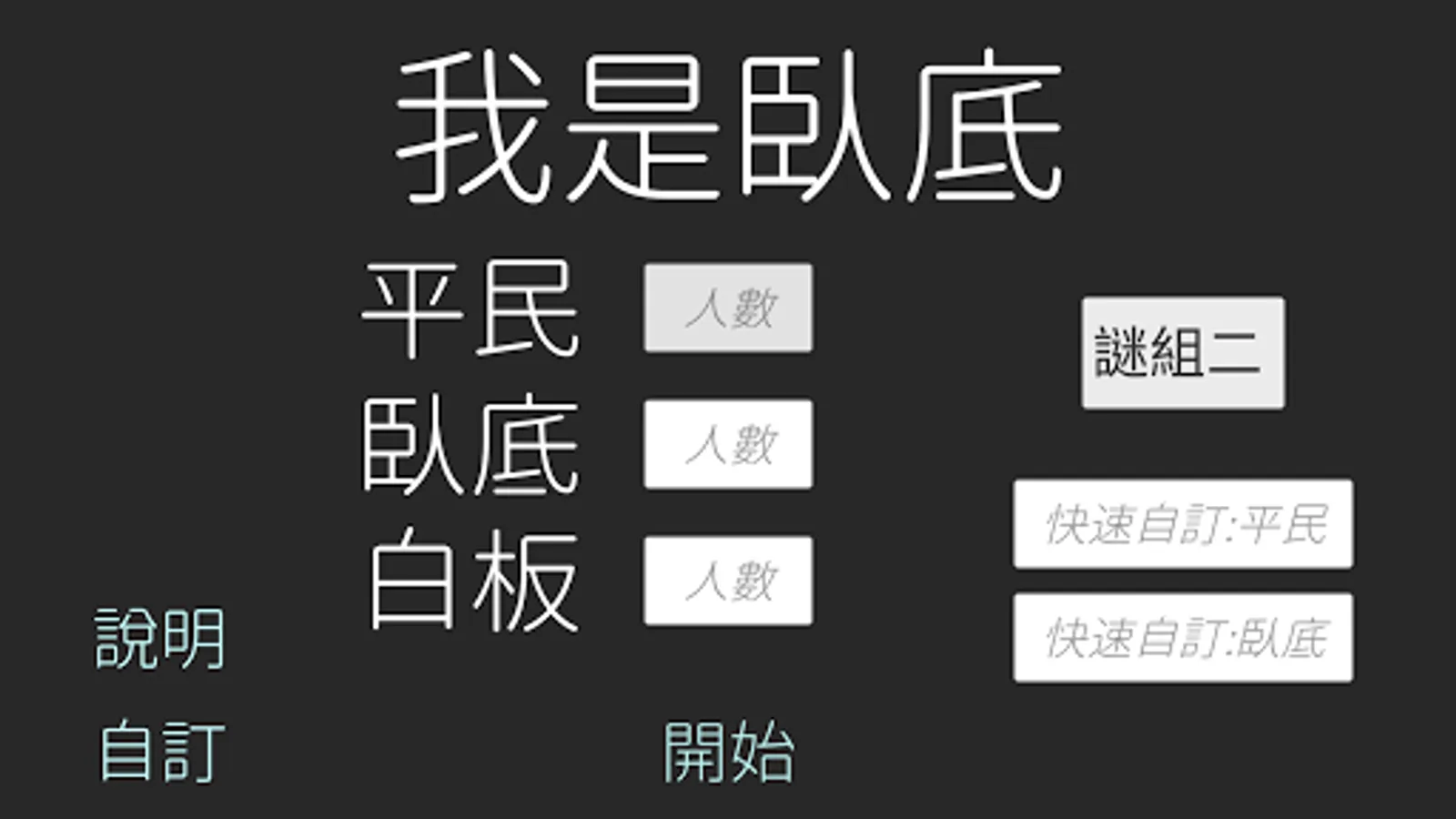 This is a simple board game, you only need a mobile phone to play with everyone, the player describes the problem through imagination, and according to everyone's speech, guess each other who is undercover, use their knowledge and words to meet the victory!