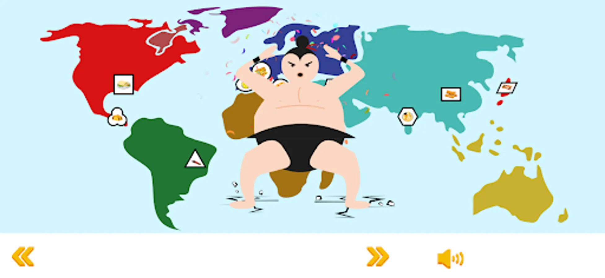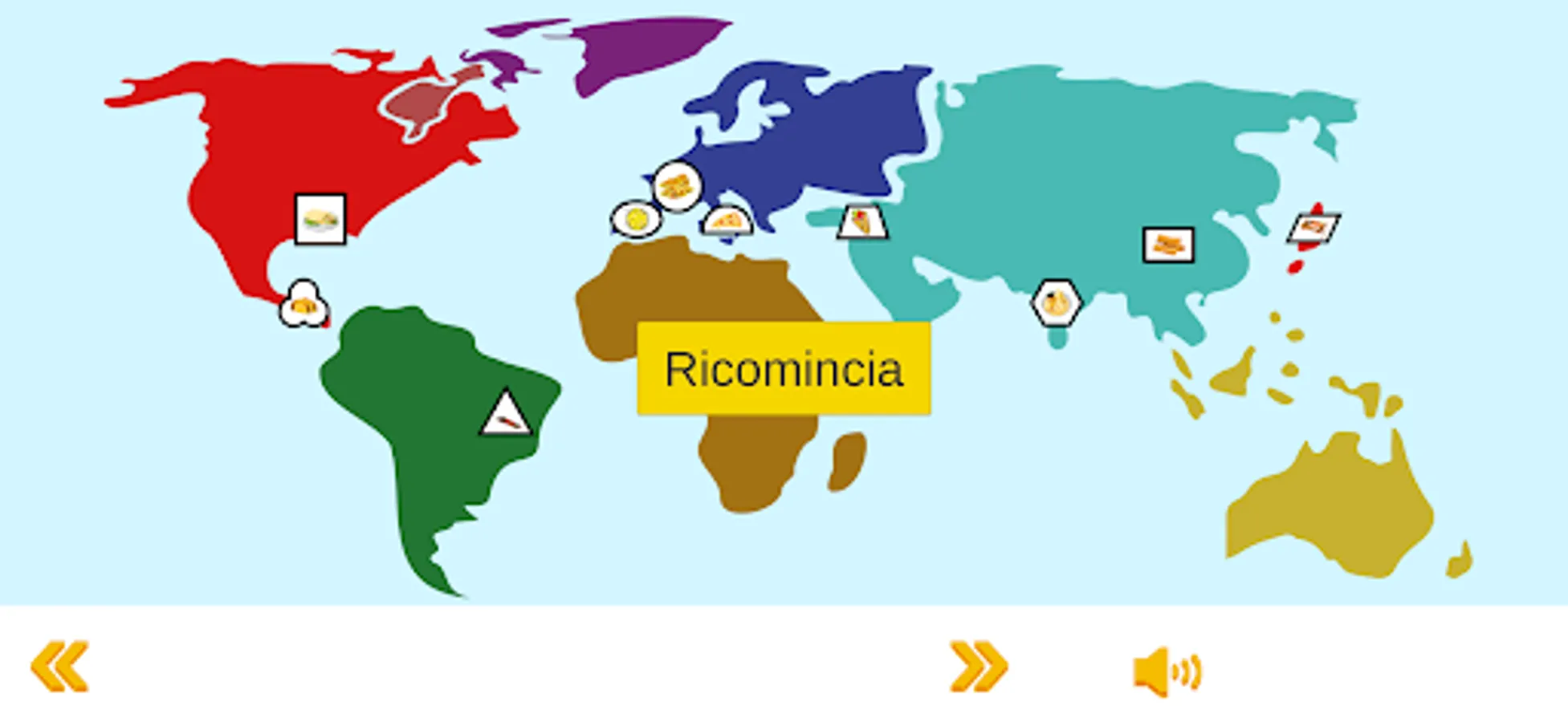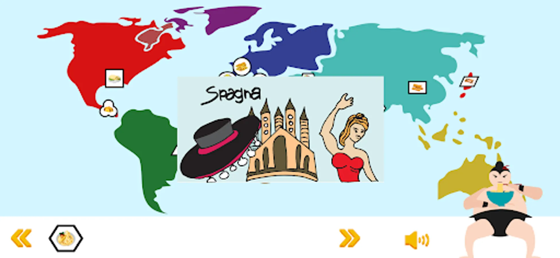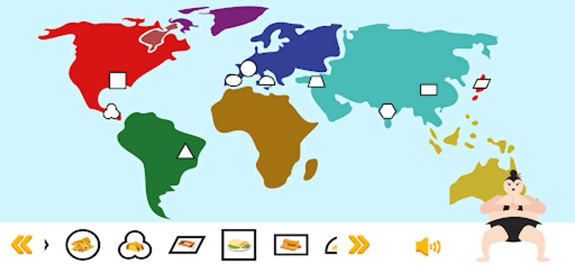 Place all the geometric shapes in the right place and learn about the foods and countries around the world