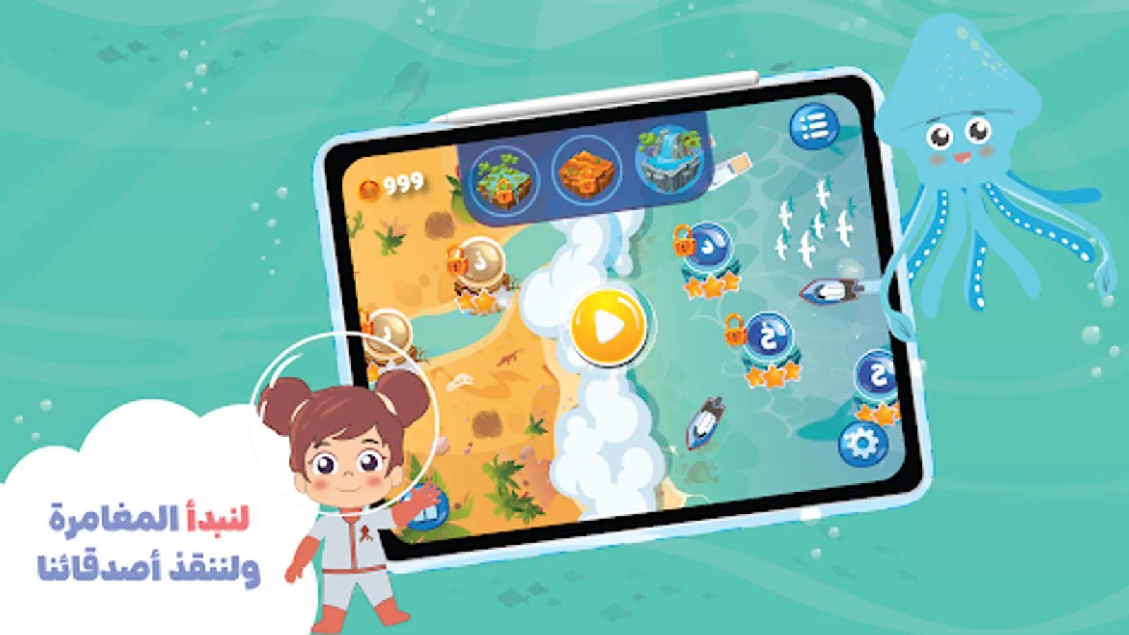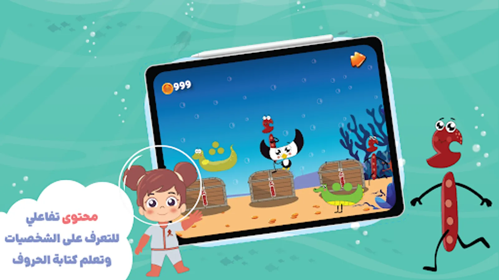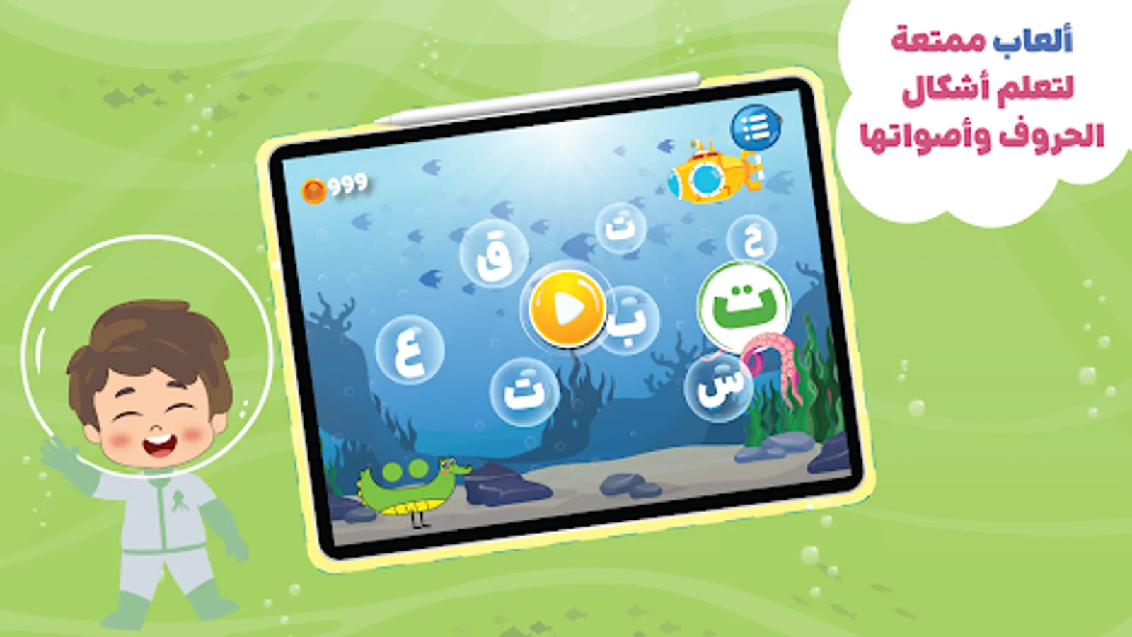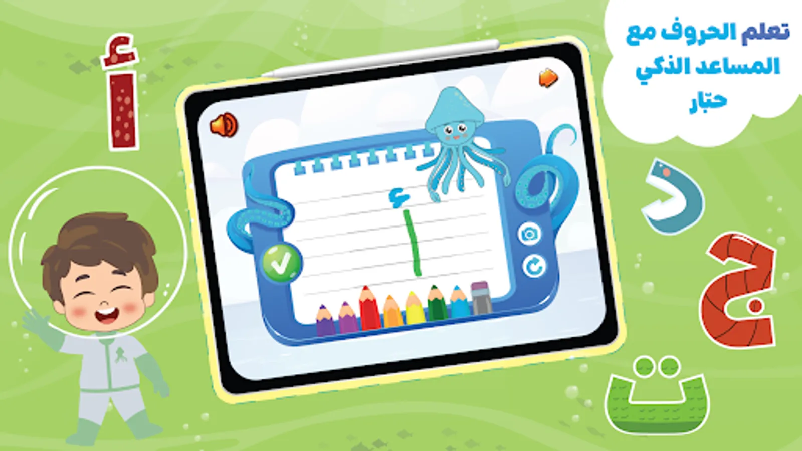 "Learning to write Arabic letters has become easy and enjoyable! In the "Habbar" app, your child will embark on an entertaining journey to learn Arabic letters, how to pronounce them, and how to write them with the help of their friends Habbar, Kenda, and Ya'qut.