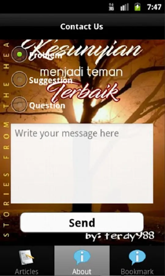 Jika anda berniat untuk mempublikasikan karya anda baik berupa novel,cerpen,puisi dan maupun hasil karya anda lainnya ke dalam bentuk aplikasi Android di Google Play Store seperti aplikasi ini,silakan hubungi email kami :ProStudy2@gmail.com