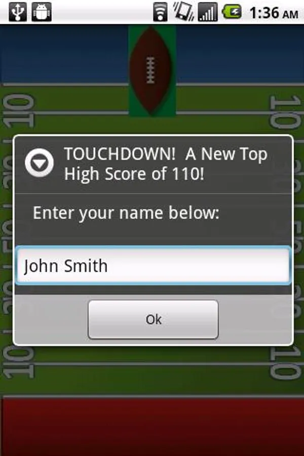 See how far you can "throw" a football. Swing your phone as hard as you can and see how many Quarterback points you can get. If you beat the top high score on the phone you score a touchdown! If not, your pass will come up short. Test your skills against your friends. Keeps the top five high scores.