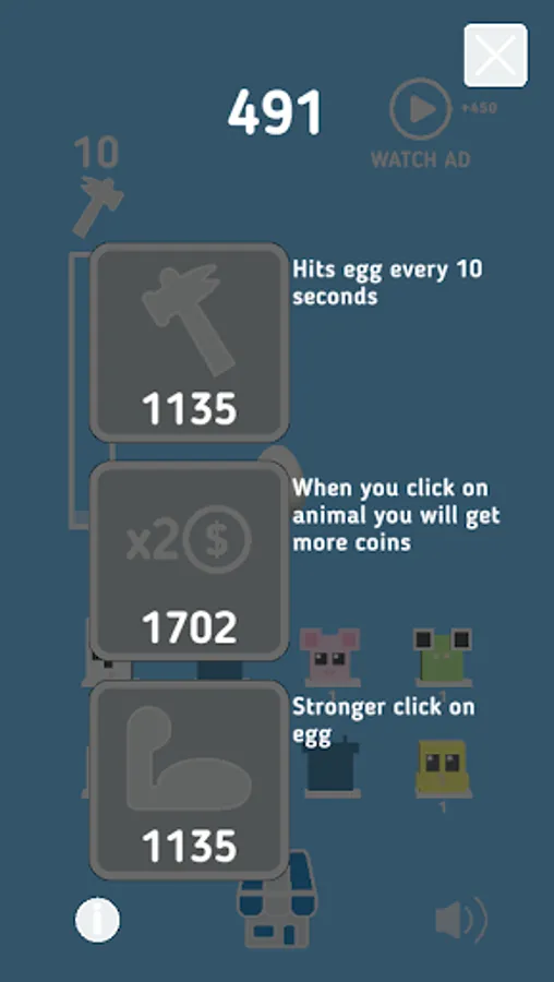 If you buy x2 COINS, then when you click on the animal, it will give you twice as much as before. You can buy a lot of x2 and the animals will give even more coins. With each purchase x2 its price increases 2 times.