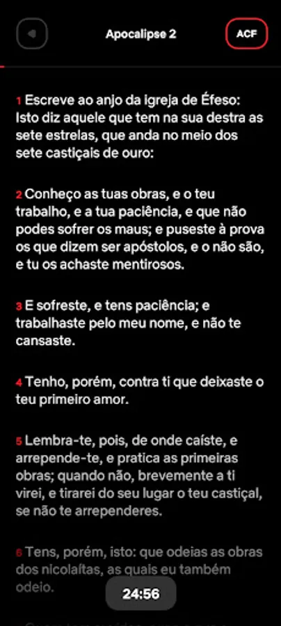 The Maratone a Bible app has three versions of the Bible: ACF (Almeida Corrigida Fiel), NVI (New International Version), which has a more accessible language, and JFA (João Ferreira de Almeida), which brings a more classic translation. The user can also choose to read and study the Bible in a physical way.