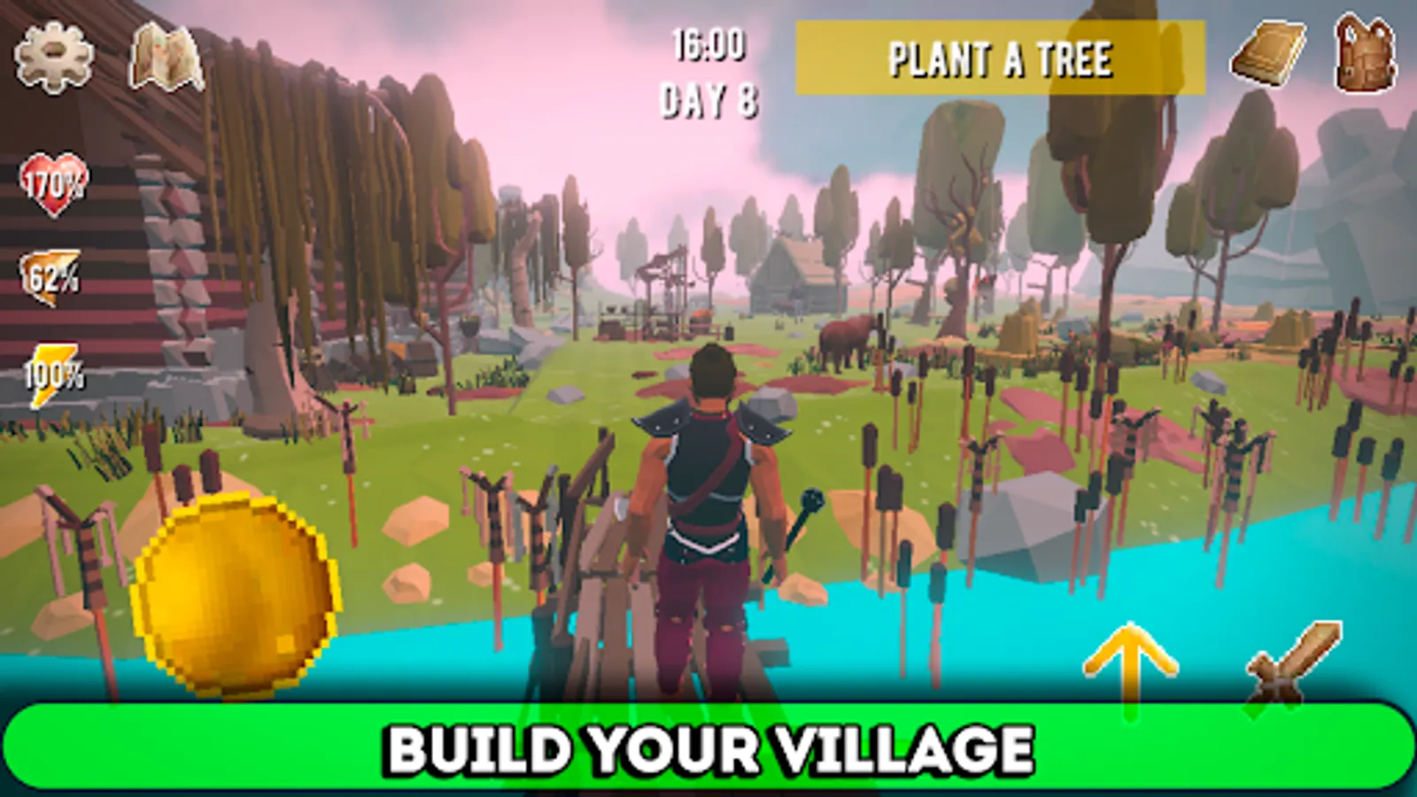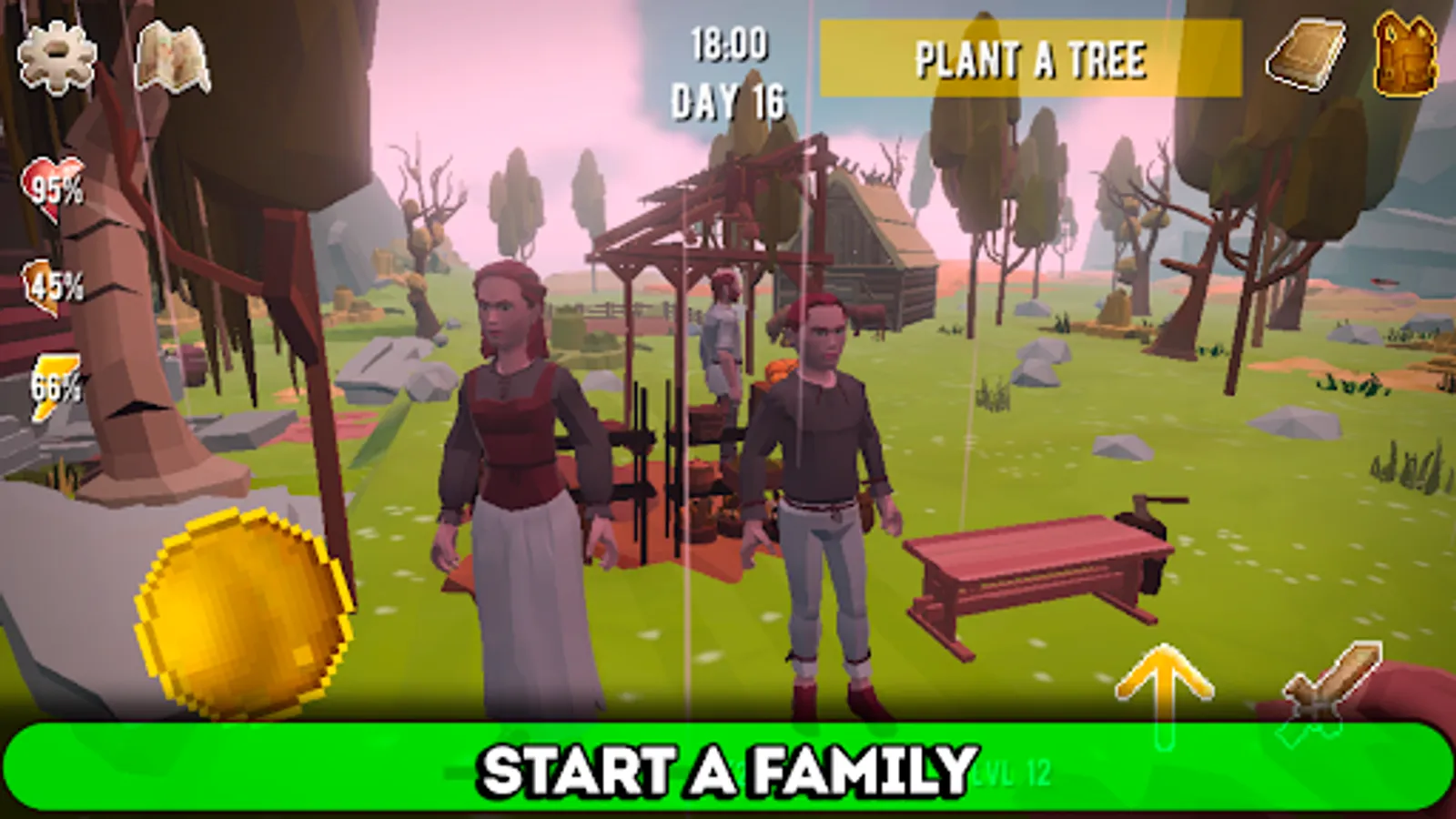 Play medieval village games rigth now! Here you will find a medieval atmosphere and rpg village. Build your home from scratch, plant a tree, raise a child, farm, medieval world, herd and go on an adventure in village life.