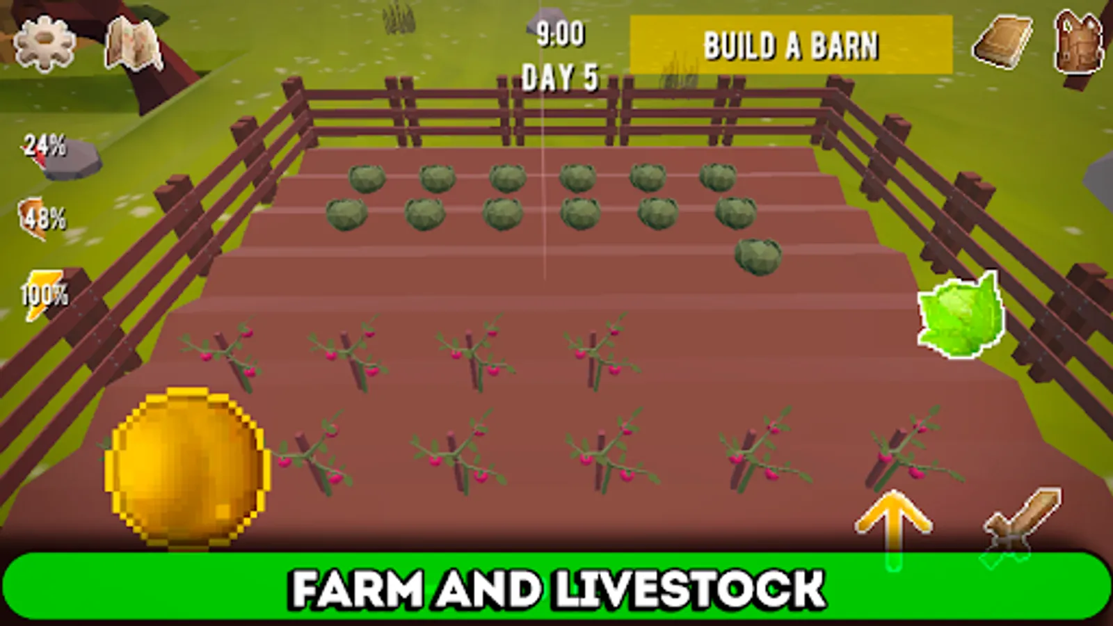 Build a farm and vegetable garden and grow tomatoes, cabbages, apples and more in medieval rpg! You will always have food in farm in your pocket village life!