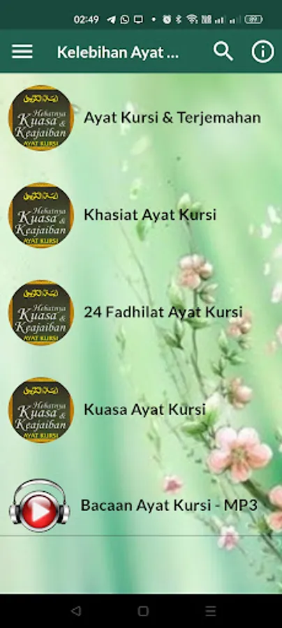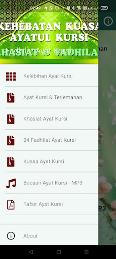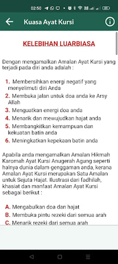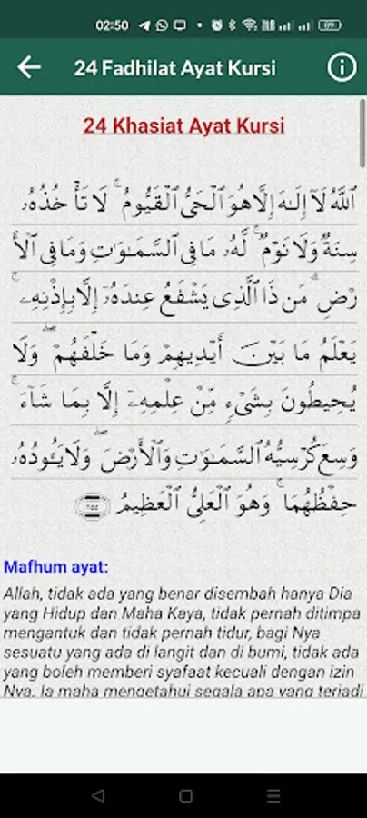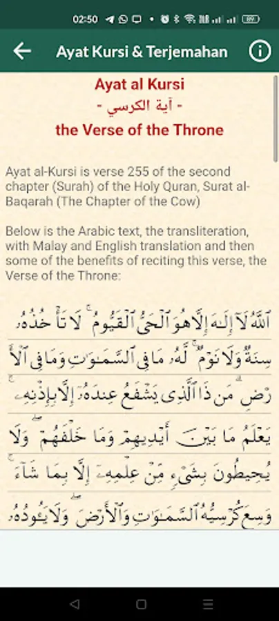 An application that will reveal to us all about Cool-General Ayat Kursi (Surah Al-Baqarah Verse: 255) for the always practice it ..