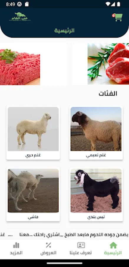 The "Ghina Al-Sham" application is an application for a meat establishment that provides home delivery of fresh meat in good packaging. The application allows customers to order lamb, veal and wild animals, specify the method of cutting the carcass, and cut the beef and lamb. The application also offers the option of cutting the lamb completely, making beef patties, Sudanese ribs, tortillas with minced meat, pepperoni meat, sizzling meat patties, dishes with minced meat, the method of making steak, plum meat and beef hamburger. Grilled pigeons, hash meat, minced meat lasagna, meat fajitas, meat plate and meatballs can be ordered. In addition to the benefits of different meats, such as the benefits of veal, chicken, candos, hashi, turkey, carrots, and veal. The application also provides recipes for preparing different dishes, such as how to cook hashi meat at home, meat stew hashi pasha, artichokes with minced meat, mashed potatoes with minced meat, and meat leaf. Meat can be ordered in many different ways and without putting a period between each sentence in the application.