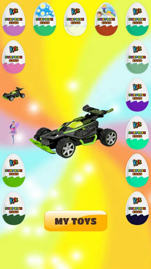 Super Toy Eggs is a game for girls and boys! Wondering what's inside the surprise chocolate eggs? Unlock all the eggs to collect a collection of new toys There are many colorful eggs and wonderful toys! Kids can play with a lot of surprise eggs and toys. You will find plenty of eggs and many interactive surprises that make this game can be addictive! On each level you will find chocolate eggs with a surprise! The toys are waiting for you inside the egg! Our children's game will be your favorite, this is a game for girls and for boys, and even for kids! Accessories, cars, cats, dogs, balls,butterflies, fairies, little ponies, magic horses and unicorn, pets, princes, princesses, dolls, babies animals and many more. Super Toy Eggs is the great application for entertaining small children and is the ultimate surprise eggs virtual simulator.