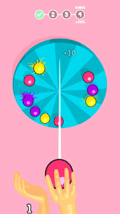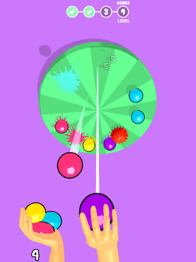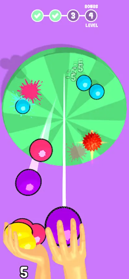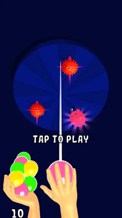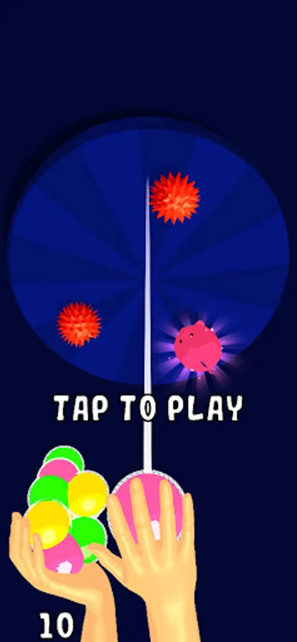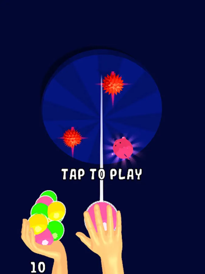 Throw the stick balls to the ceiling, careful to the spikey obstacles, hit the piggy bank and stick all balls to the ceiling without dropping any.