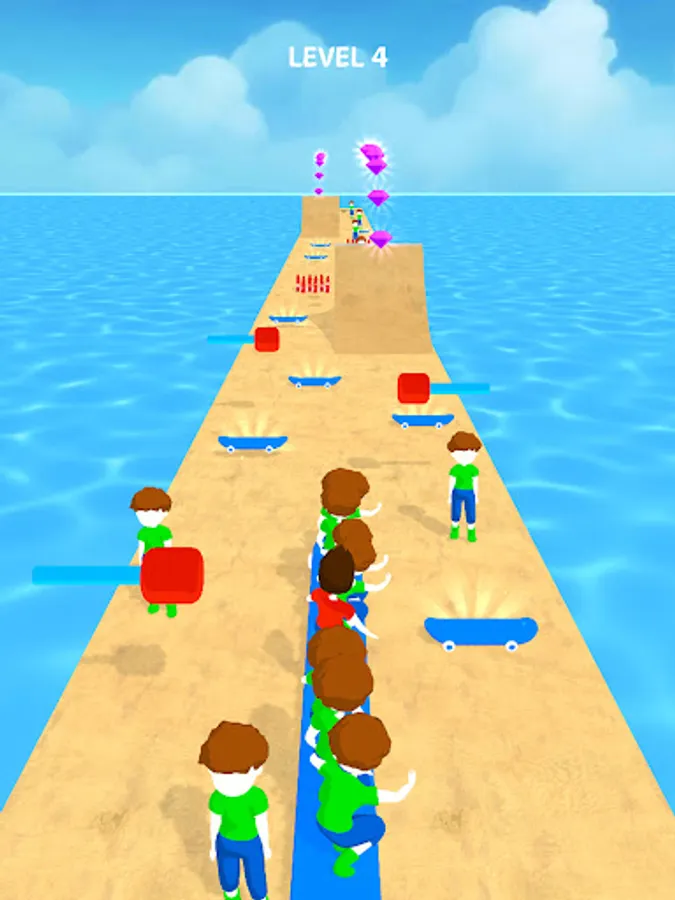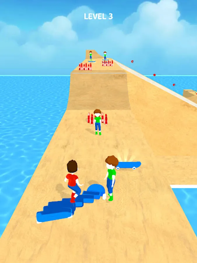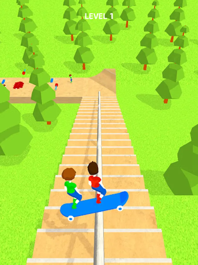 Hey skater! Collect skateboard pieces to make cool moves with your long board. Pick up your skater mates on the way. Be careful of the obstacles and try to keep balance while on the rails. Have fun!