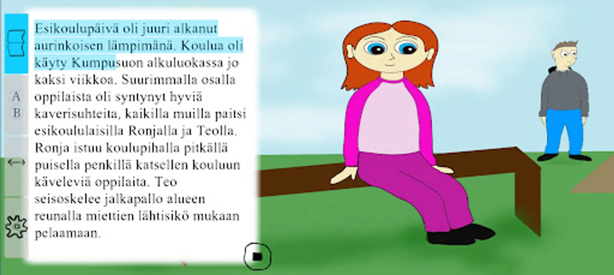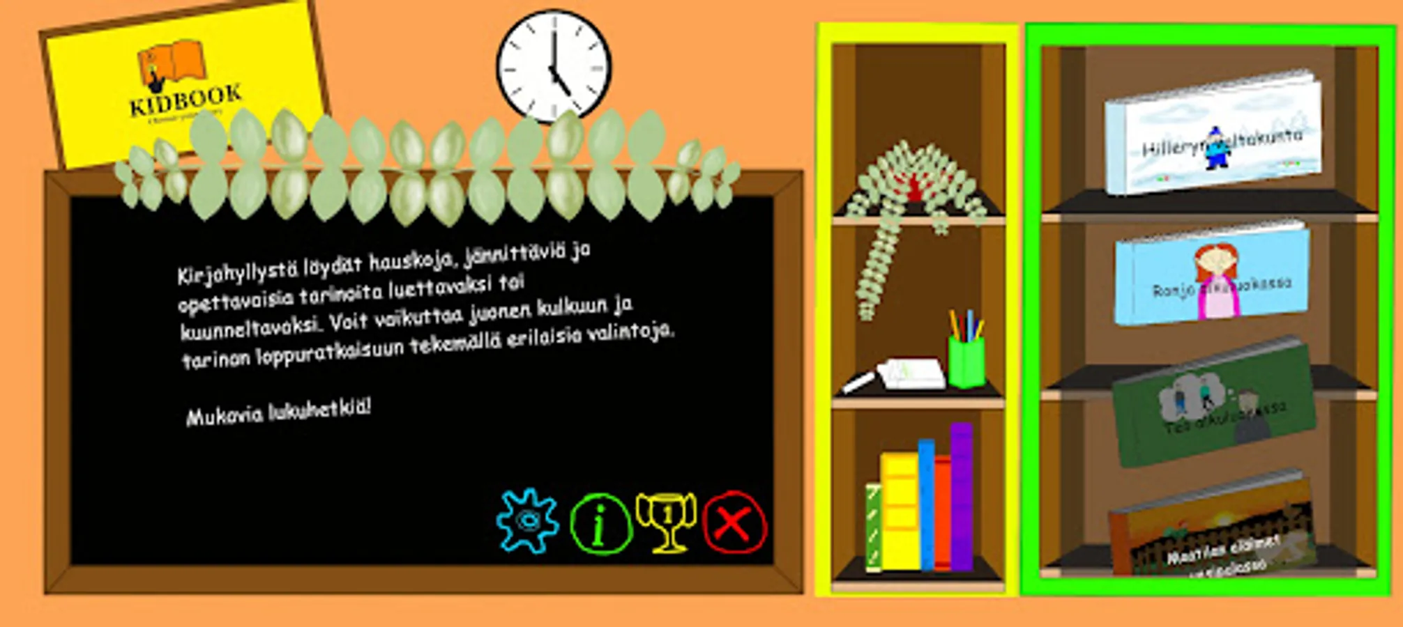The interactive audiobook contains funny, exciting and educational stories. You can read and listen to the stories in Finnish, Swedish and English. There are easier-to-read books as well as longer texts. Some of the books can support a child's emotional and problem-solving skills.