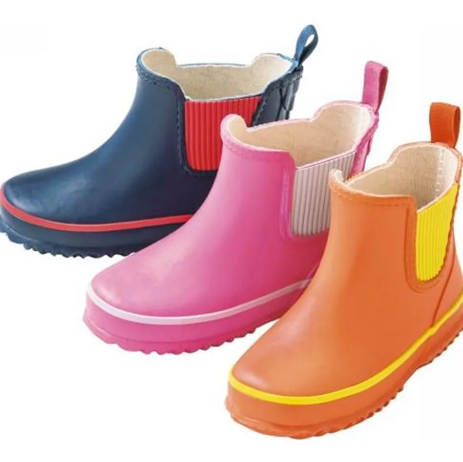 Some are super shiny and made of rubber, while others have a more subdued look. Other types are simply pull-on rubber boots that your child can put his already shoe-clad foot into. A few have cartoon characters printed on them, and some are available in bright solid colors.