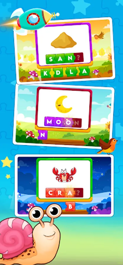 Get your toddler started by discovering the most commonly used three- and four-letter words. Fill in the blank or unscramble words in a puzzle-like interface!