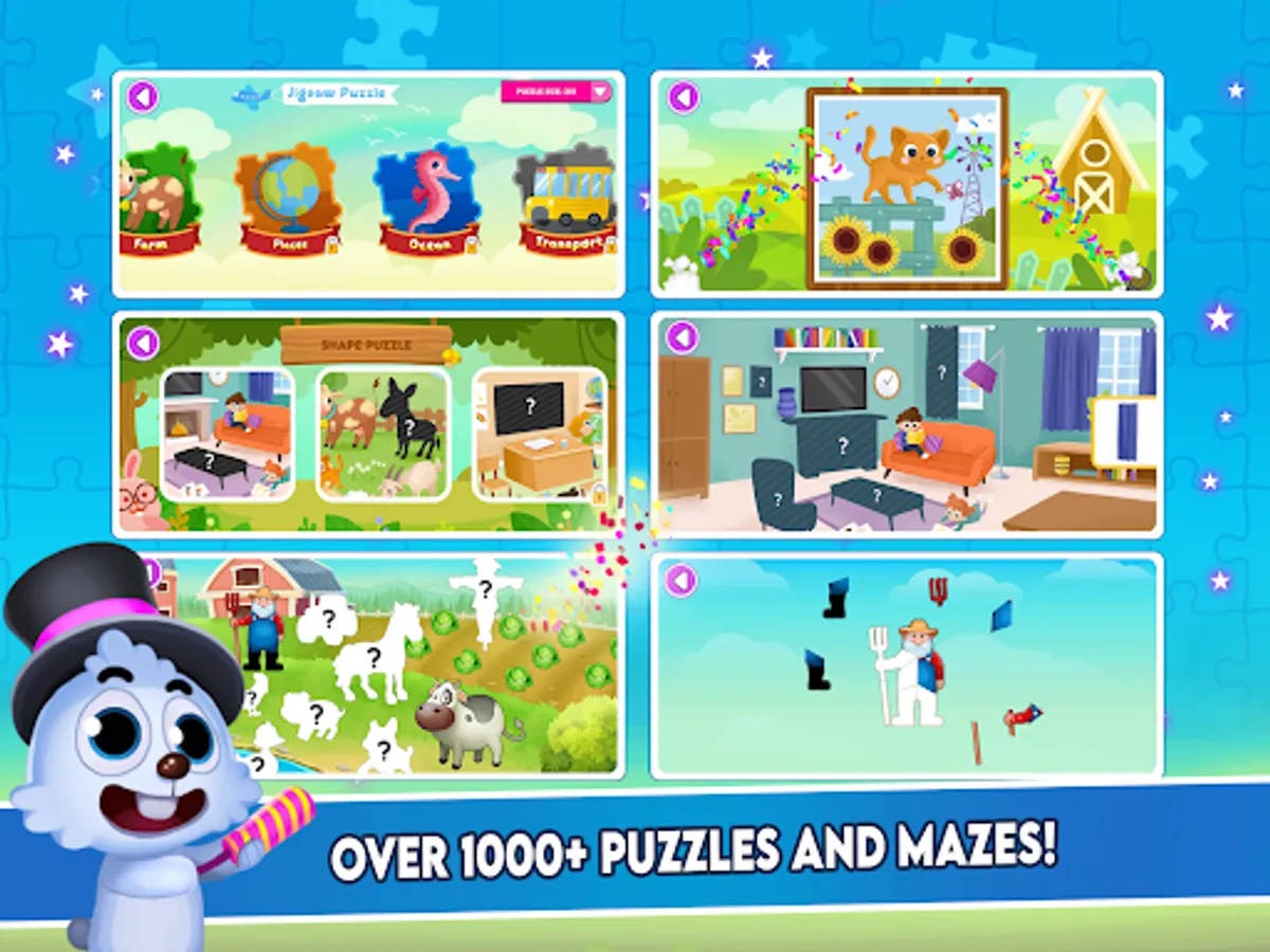 Puzzles are essential in developing memory, problem-solving skills, hand-eye coordination, spatial vocabulary and more! Kidszle is an all-in-one puzzles app that includes Jigsaw puzzles, Shape puzzles, Tangrams, Sliding puzzles, Mazes and more!