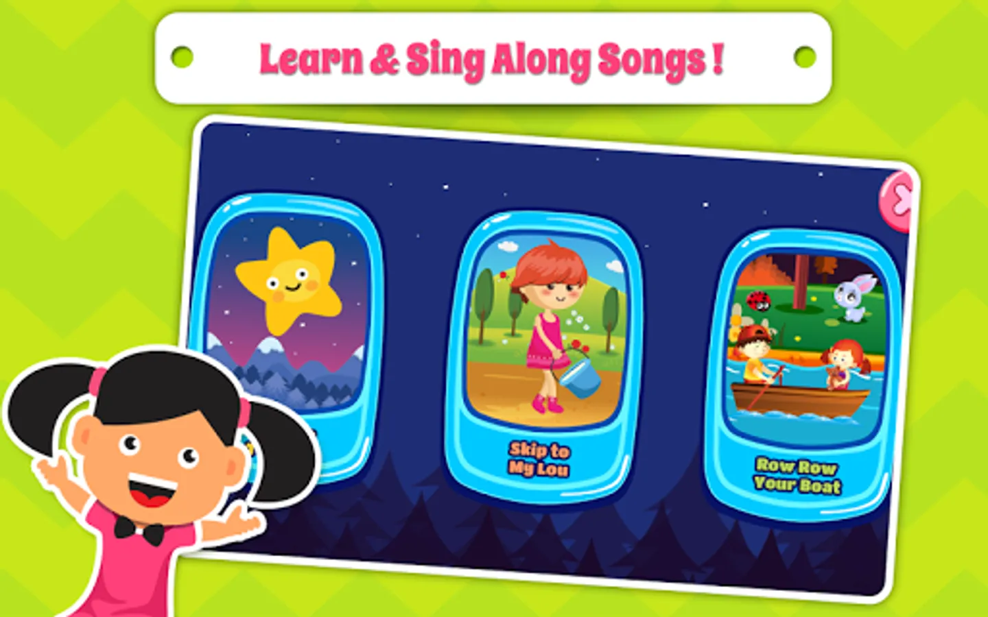 Nursery rhymes for kids interact with the characters onscreen as they learn, play & sing along. Kids & little baby will have fun interacting & touching the animals to hear the sounds. Favourite Nursery rhymes for kids & nursery songs that are included in this free apps for kids - Twinkle Twinkle little Star, Old McDonald Had a farm, Mary had a little lamb, Row Row Row your boat, Tisket Tasket, Skip to my Lou, wheels on the Bus, Alphabet Song