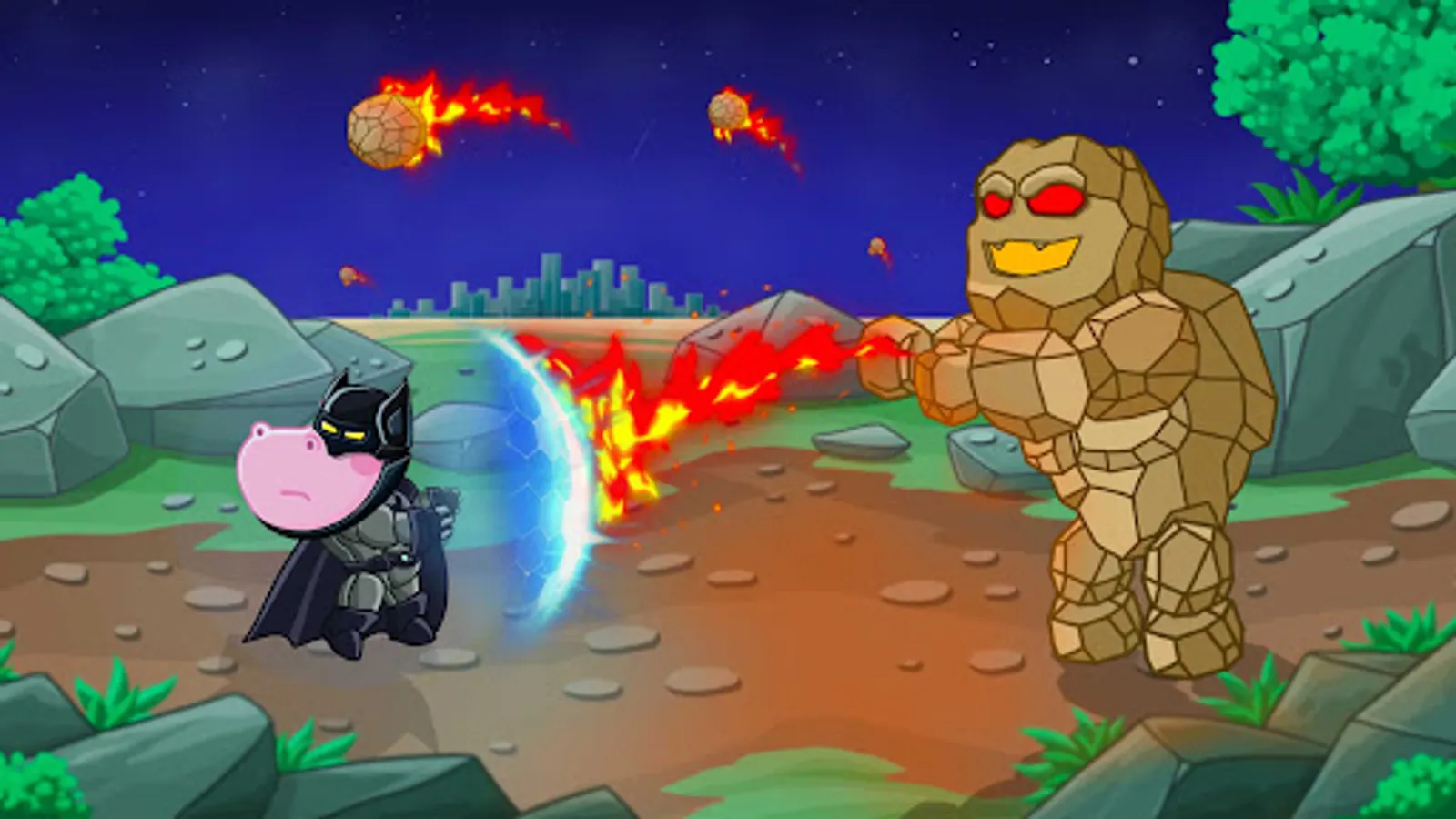 Super criminals are again in action! Boss, the strength of whom has been never told about even in comics, has appeared from the very depth of the space. Hippo Town and its citizens are in danger again. Very soon all the streets will be fulfilled with furious monsters and all the possible criminals. And that means that superhero adventure goes on! All the heroes and superheroes want to help! Hippo town will be saved! But to win Boss you need to try very hard and gather all the superhero squad together. Only together they can win Boss. Hippo and friends in the guise of the most powerful and popular heroes - accept the challenge! Join us for an epic battle! It's better than just comics. Here the whole history is created only by your victories and heroic achievements!