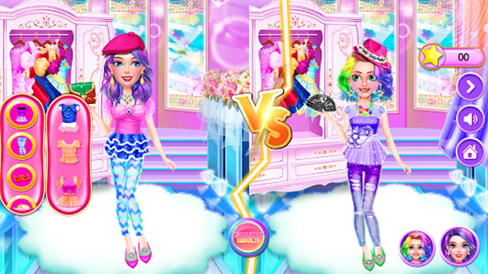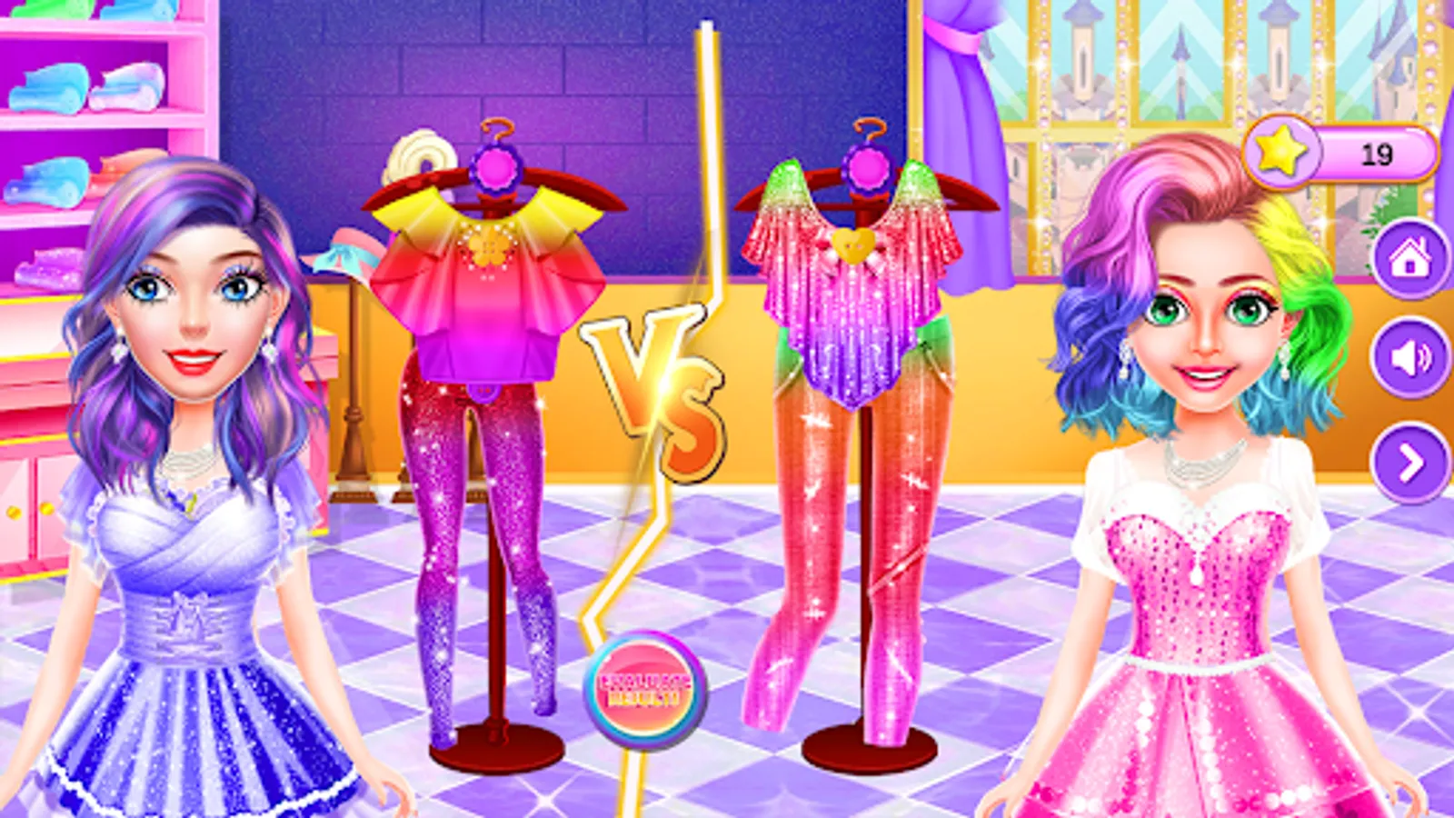 The two girls you will meet here will become your friends for sure, they want to go to a show, compete and win, they need you to help them look good. With this girl's outfits game you will own tailoring, here you have to do cleaning as you noticed that your parents do in the house or as you have already learned to clean your room. It is important to have fun and at the same time learn new things. For example, you will be able to apply makeup for each girl and after this, you have to choose some interesting outfits.