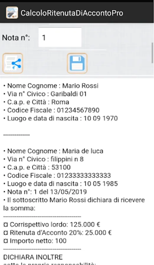 easily the withholding tax for the compilation of the occasional receipt, both starting from the net and the gross amount. The withholding tax corresponds to 20% of the gross amount.