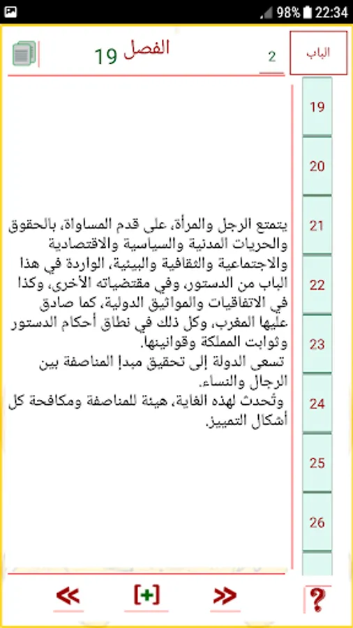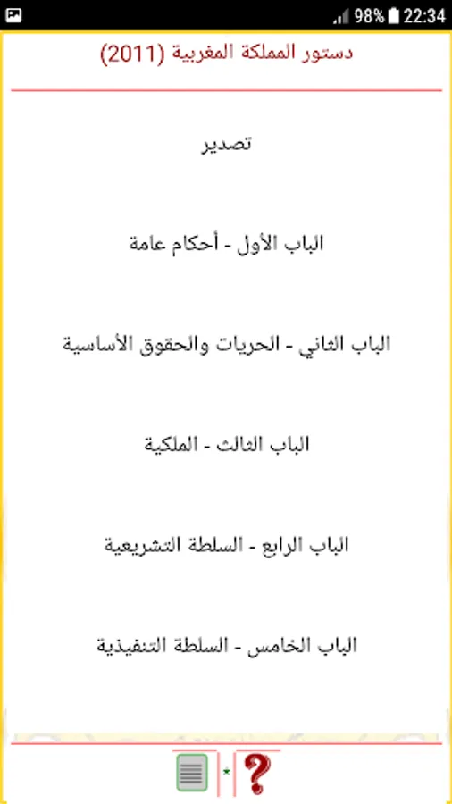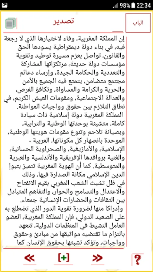 An interactive copy of the latest Moroccan constitution with links to important administrative sites and to Moroccan parties, with the possibility of adding other links and modifying the registered ones.