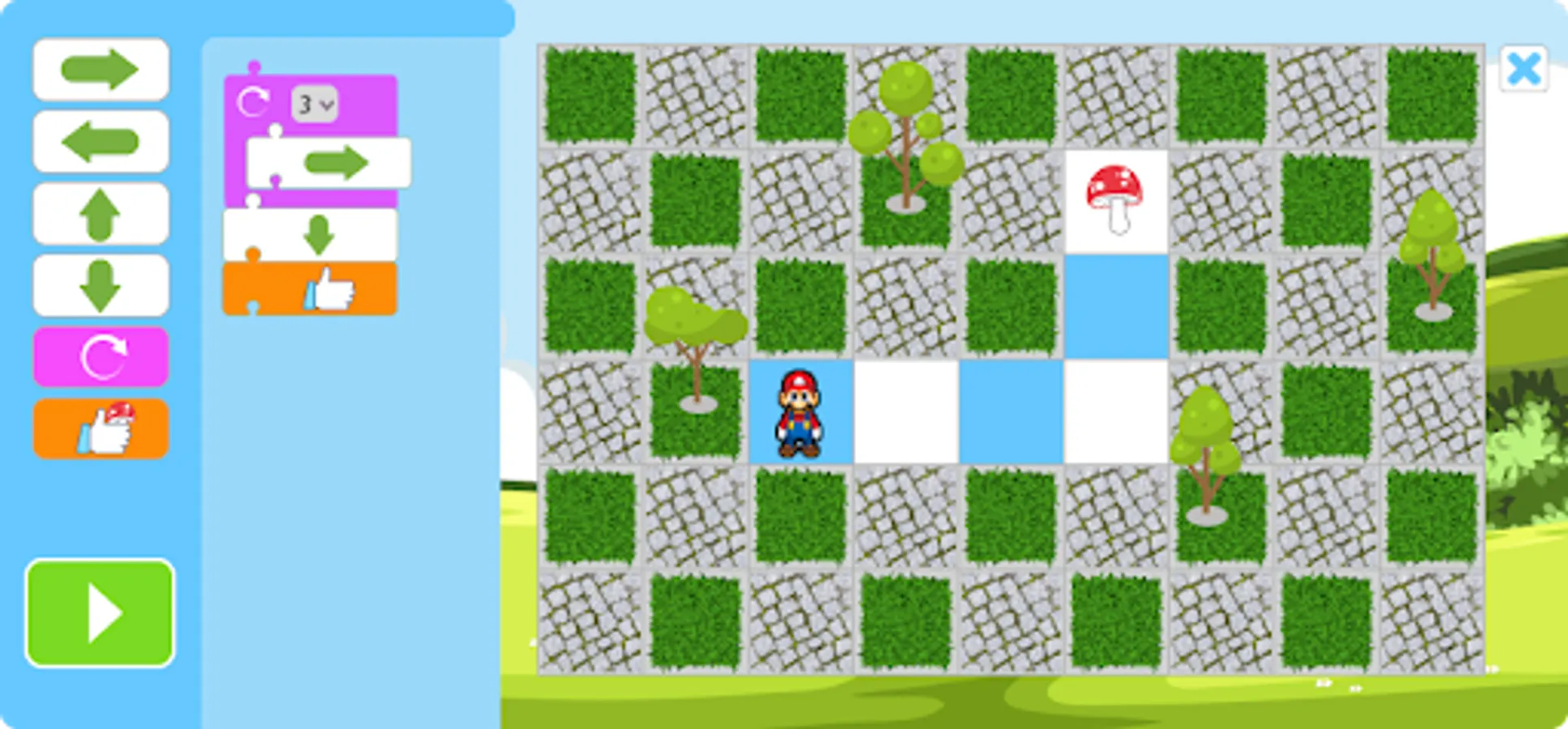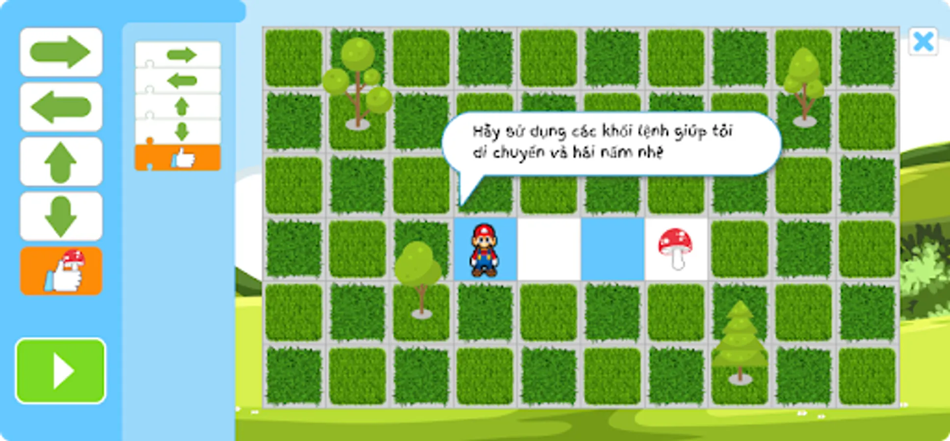 Kidy - programming thinking for kids is a fun game that teaches kids the basics of programming, an essential skill in today's world. Programming is taught through engaging games such as helping you robot return home, picking mushrooms... Kidy - programming thinking helps children improve problem-solving skills, enhance memory and increase skills logical thinking.