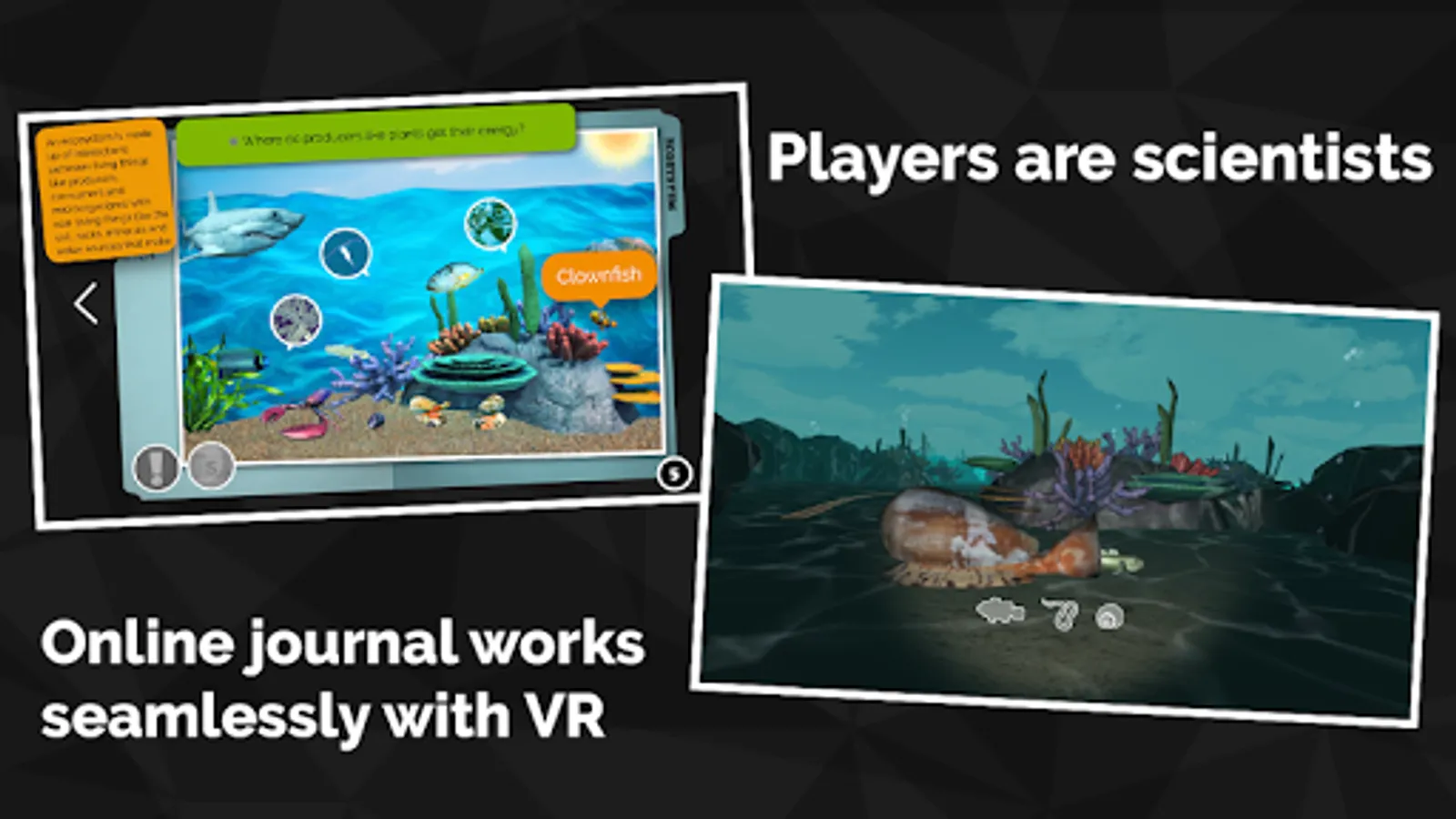 As students move through the experience, they toggle between their own personal digital science lab journal (https://biodive.killersnails.com/) and expeditions in the field, including the Eastern Atlantic, Eastern Pacific, and Indo-Pacific Oceans. They will make observations, collect data, collaborate with fellow scientists, and synthesize their knowledge to write a formal hypotheses about the impact of variables on changes to different ocean ecosystems. Players must have access to the digital science journal to view more than the first scene.