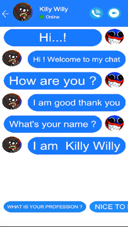 Killy Willy Fake Video Call has made for many boy and girl who love Killy Willy talking with video call and surprised to your friends and family.