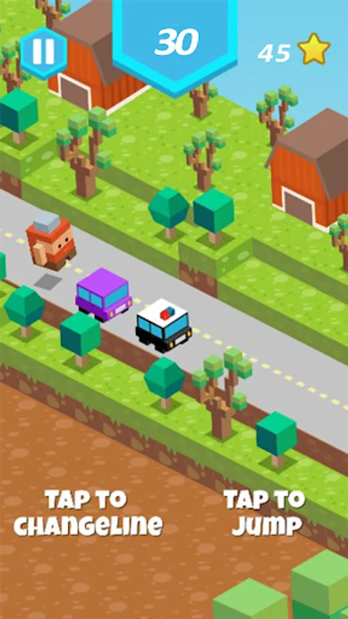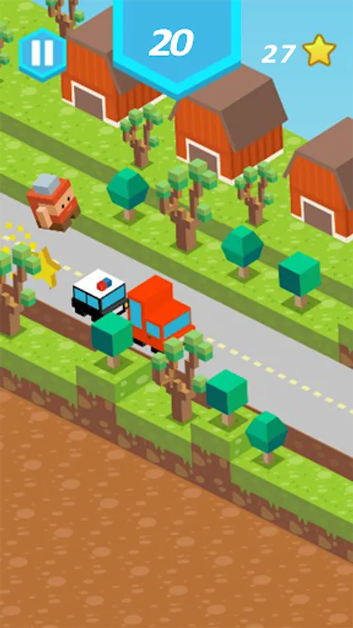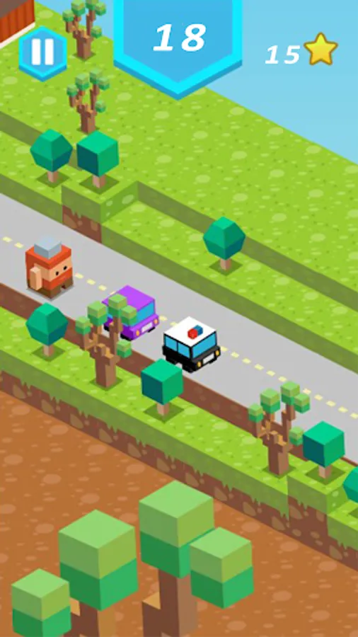 👈 Swipe left or right on the screen to navigate through the blocky roads, dodging obstacles and oncoming traffic.