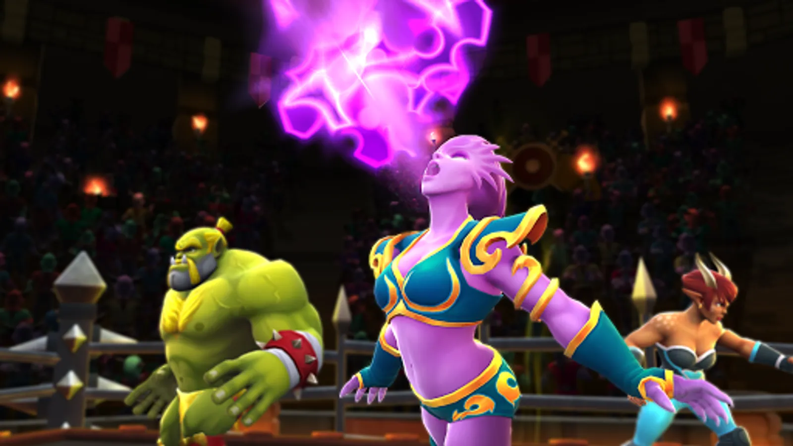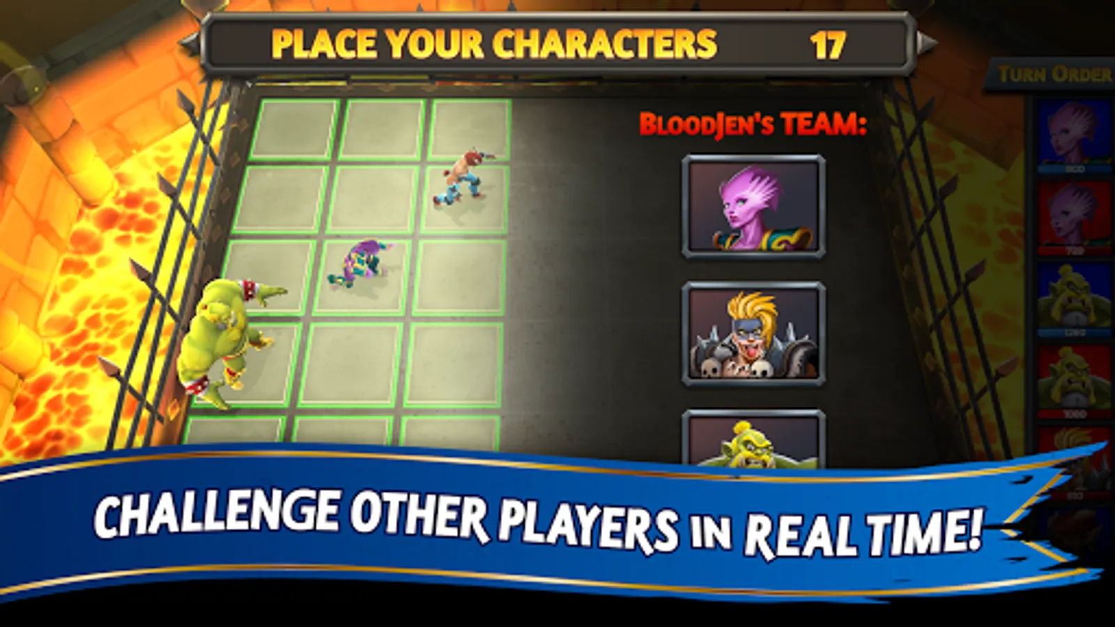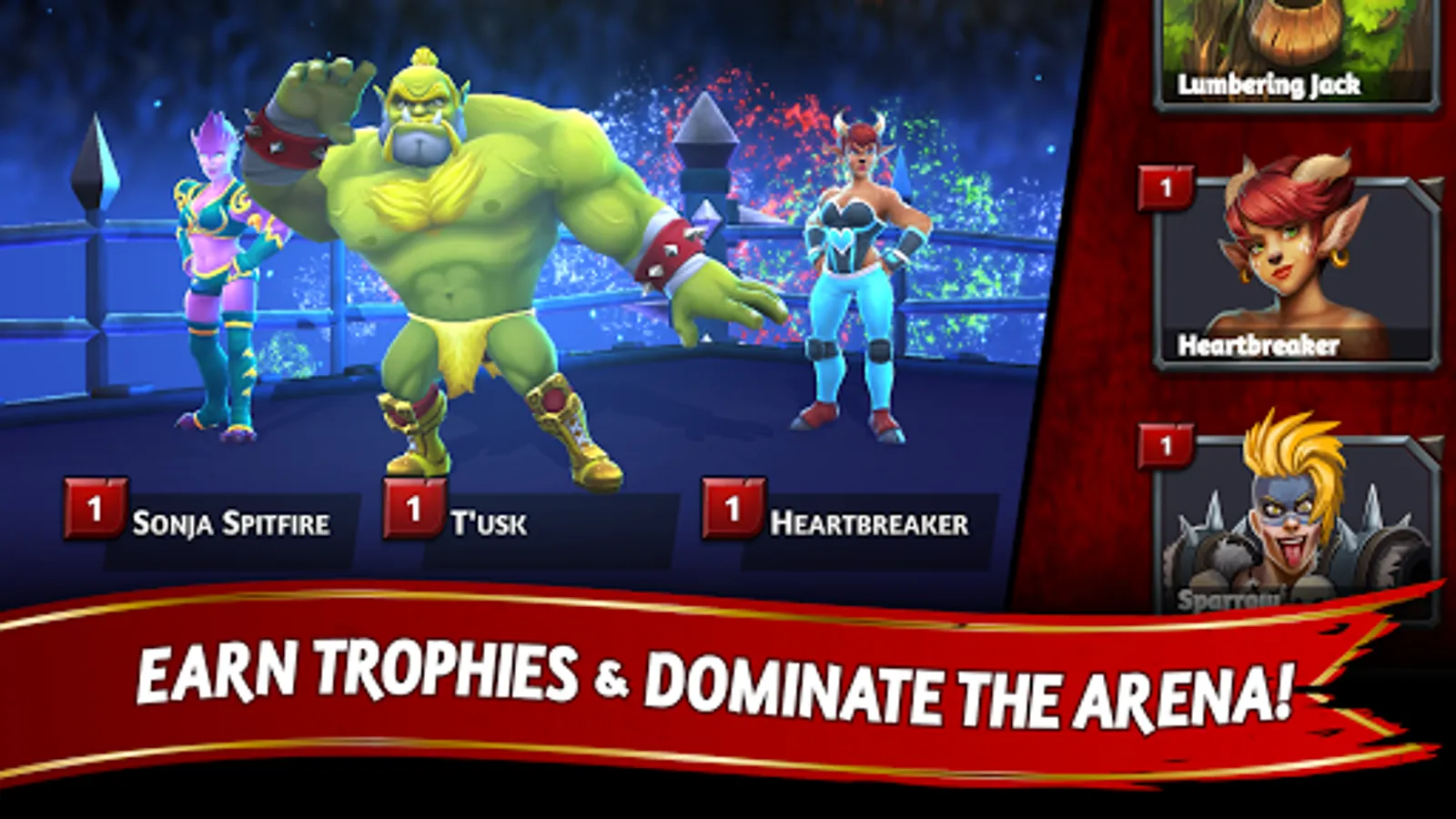 Get ready to knockout the competition! Assemble a powerful team of notorious fantasy fighters to dominate the fiery PvP arena. Battle in real-time with other players and win trophies to rank up for great rewards!