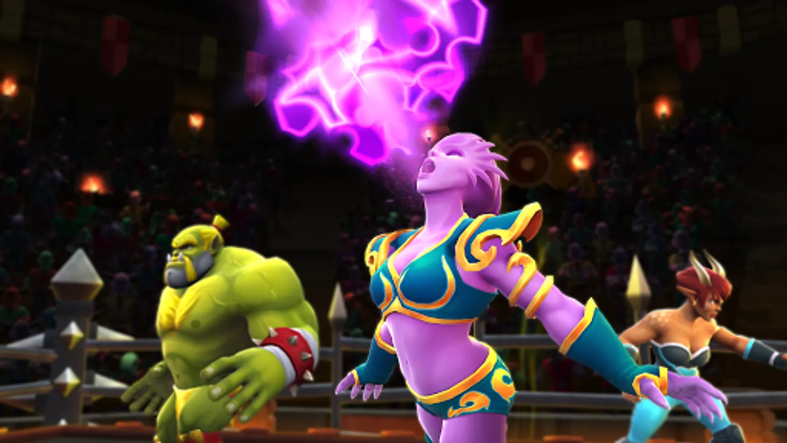 ● Recruit epic fighters to your team like T’usk a tough orc, Tiki Tauro a raging minotaur, Handsome Devil a fierce demon, Sparrow a barbaric warrior on rollerblades, Heartbreaker a feisty satyr and many more!