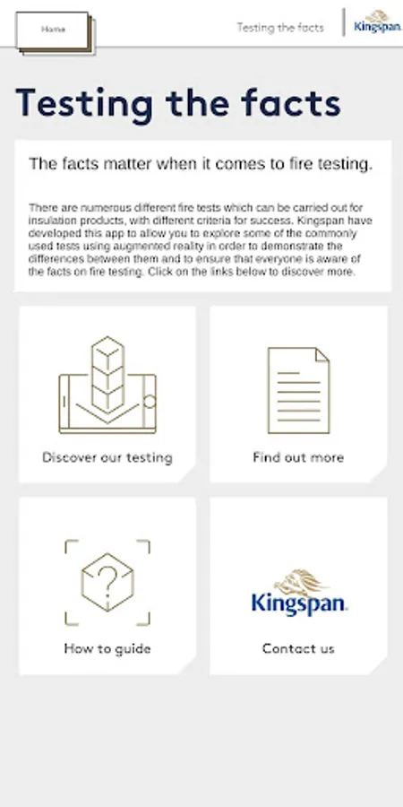 Understanding the different fire tests which can be used to assess the performance of construction materials, like insulation, can be confusing. This app aims to demonstrate the equipment and samples used to carry out key tests for insulation materials. By using augmented reality it shows the type and scale of tests that can be carried out, and the size of samples used.