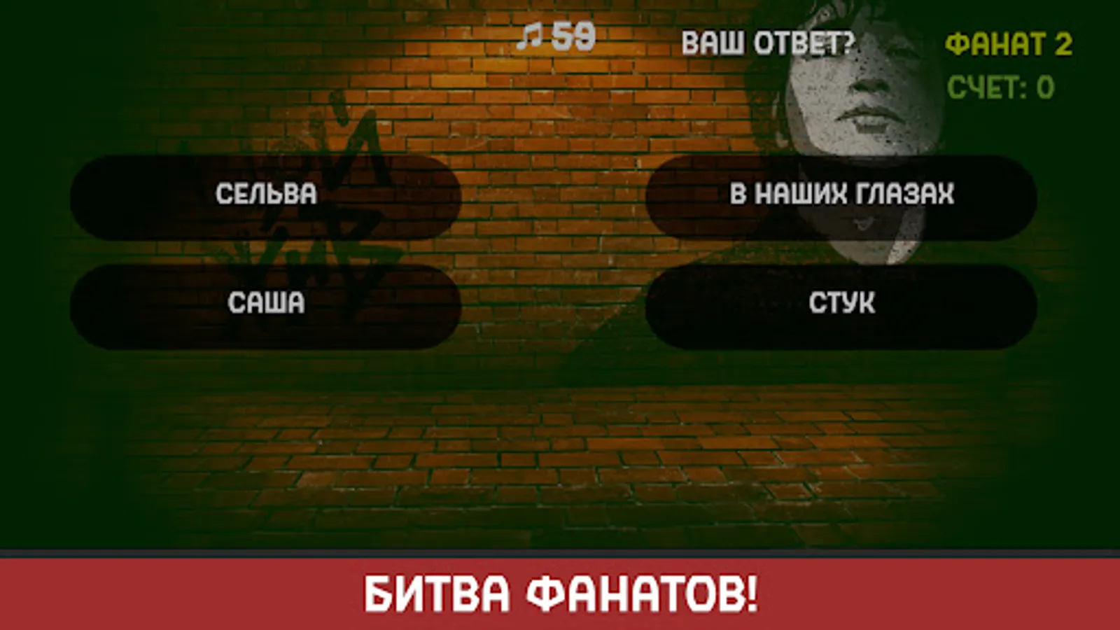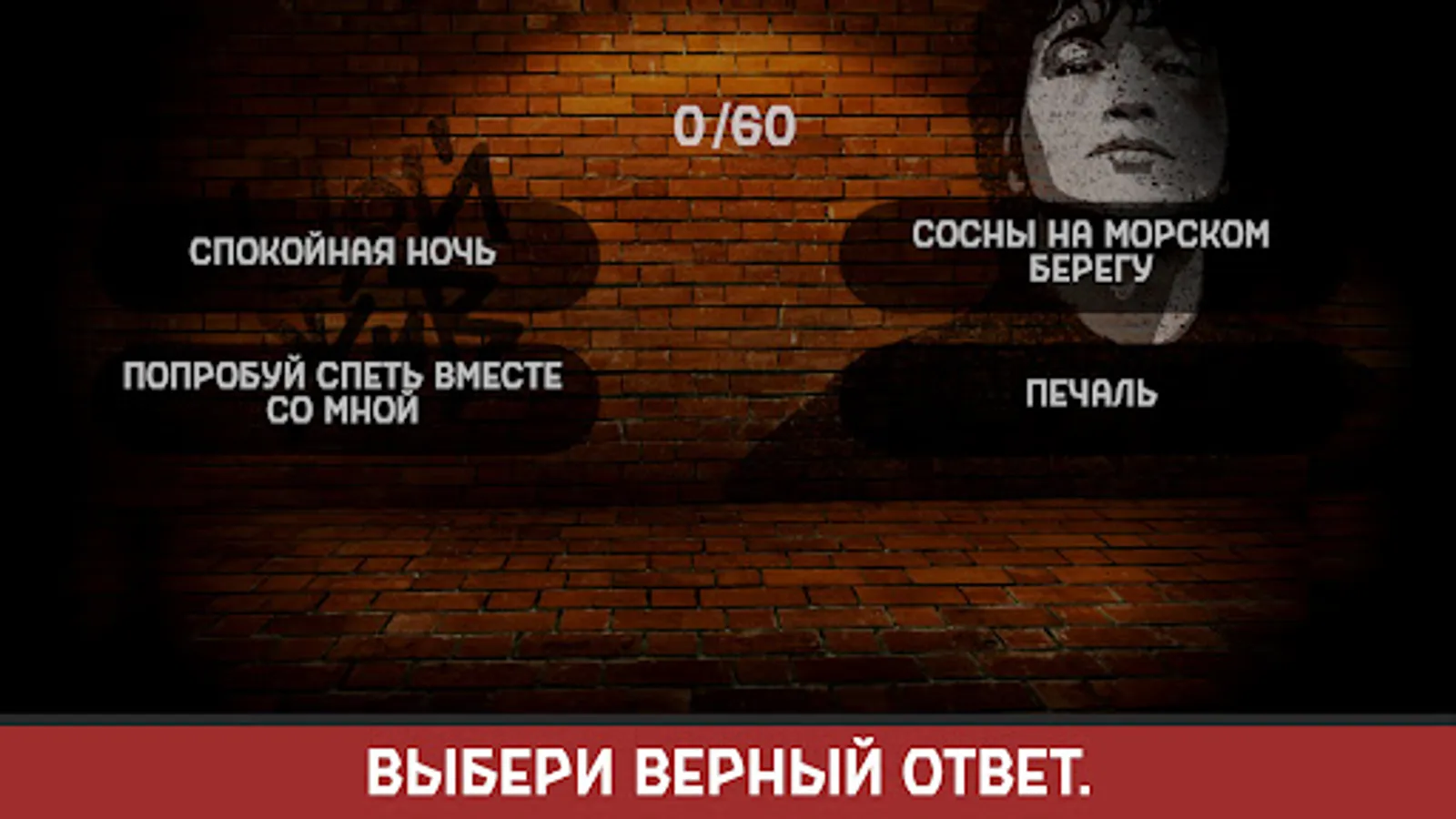 If you are a fan of Viktor Tsoi, then this game is for you. It contains 60 original melodies, each of which is unique. You need to guess the name of the song from the snippet of the melody after listening to just five seconds. To do this, select the correct answer from the four options provided.