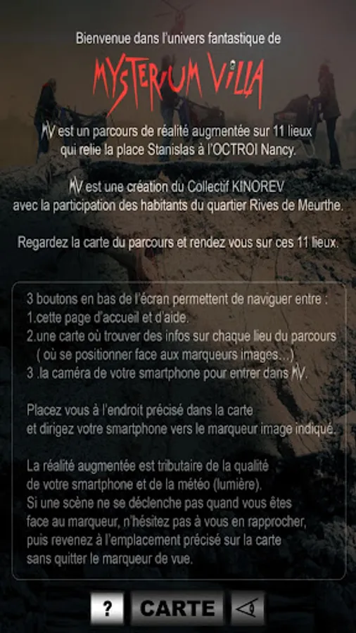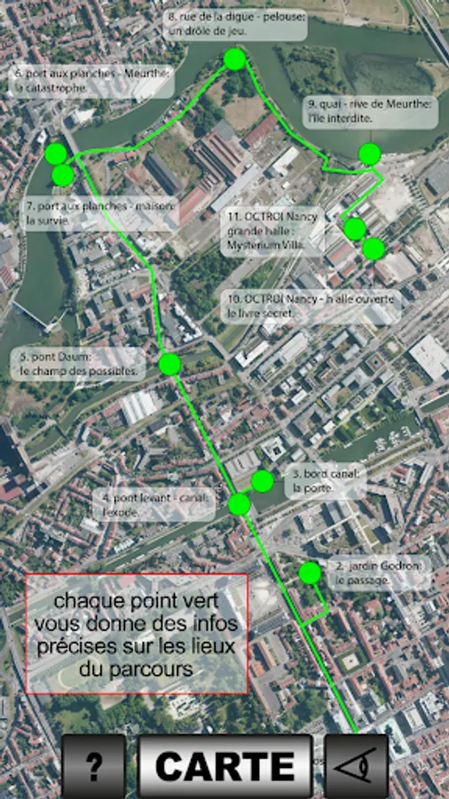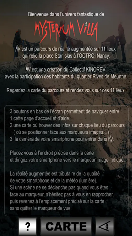 MV is an augmented reality course on 11 places which links Place Stanislas to L'OCTROI Nancy.