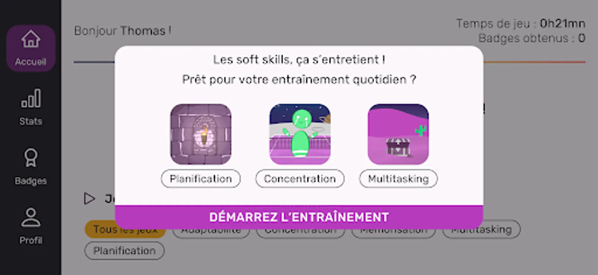 Each proposed mini game is specially designed to help you identify and develop a "softskill", a transversal skill: