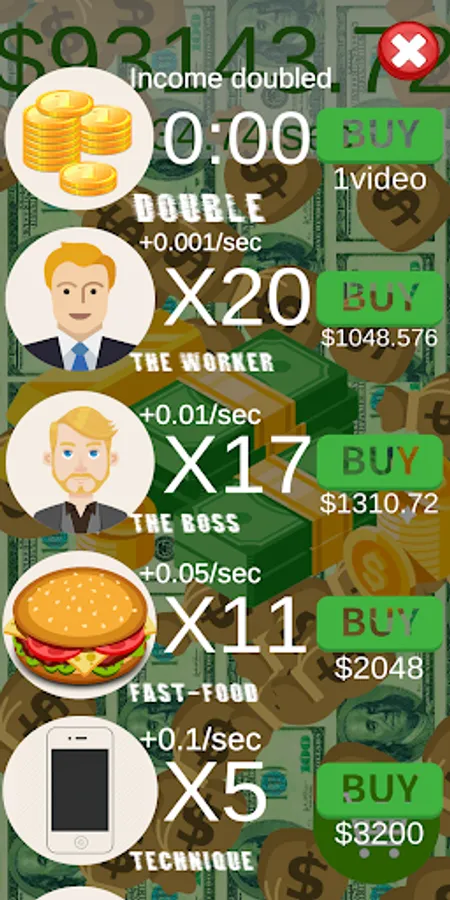 Collect money with a simple click, buy new improvements to collect even more! Become a dollar tycoon! Here you can employ ordinary workers or develop various activities that will bring you income!