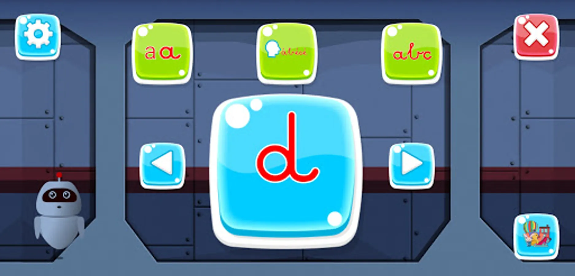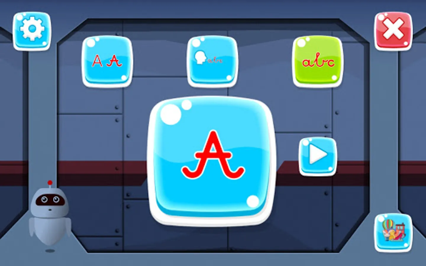 In the menu you can choose which letter you want to start with (the letters in the game follow the alphabet in a circle) or to make it lowercase / uppercase, typed / written. You can also choose to pronounce the letters based on pronunciation or sound.