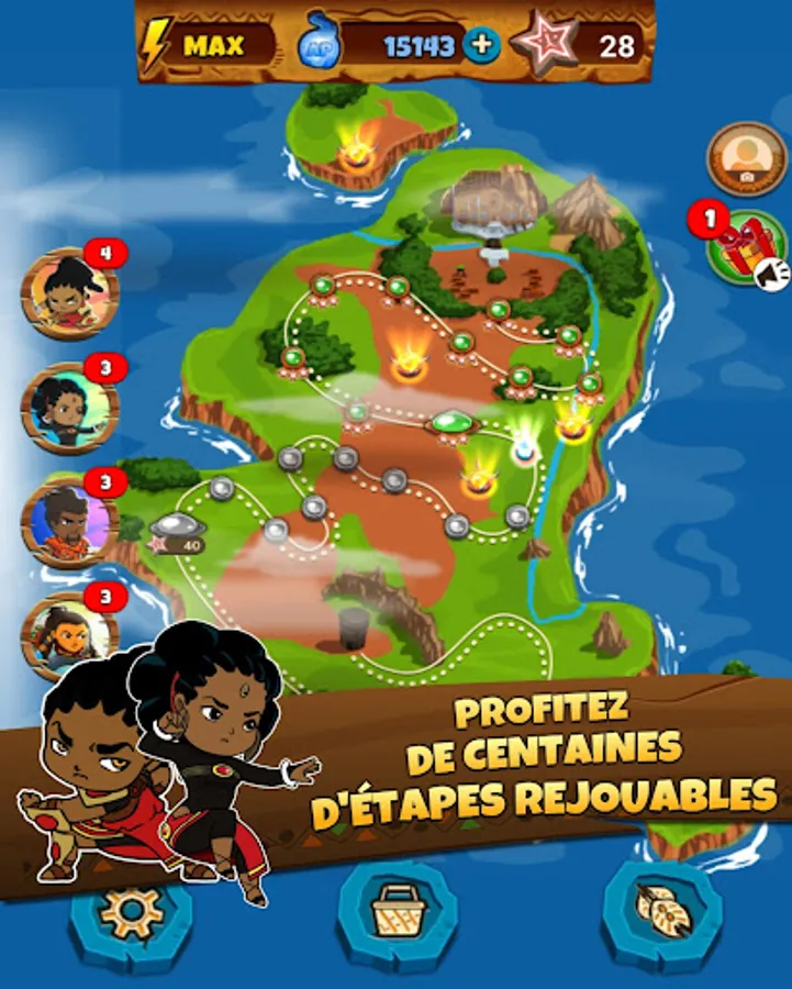 Discover a fantastic journey in a Match3 - Action Game "Made in Africa" by the studio named "Best African Video Game Studio" in 2021.