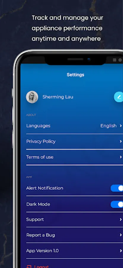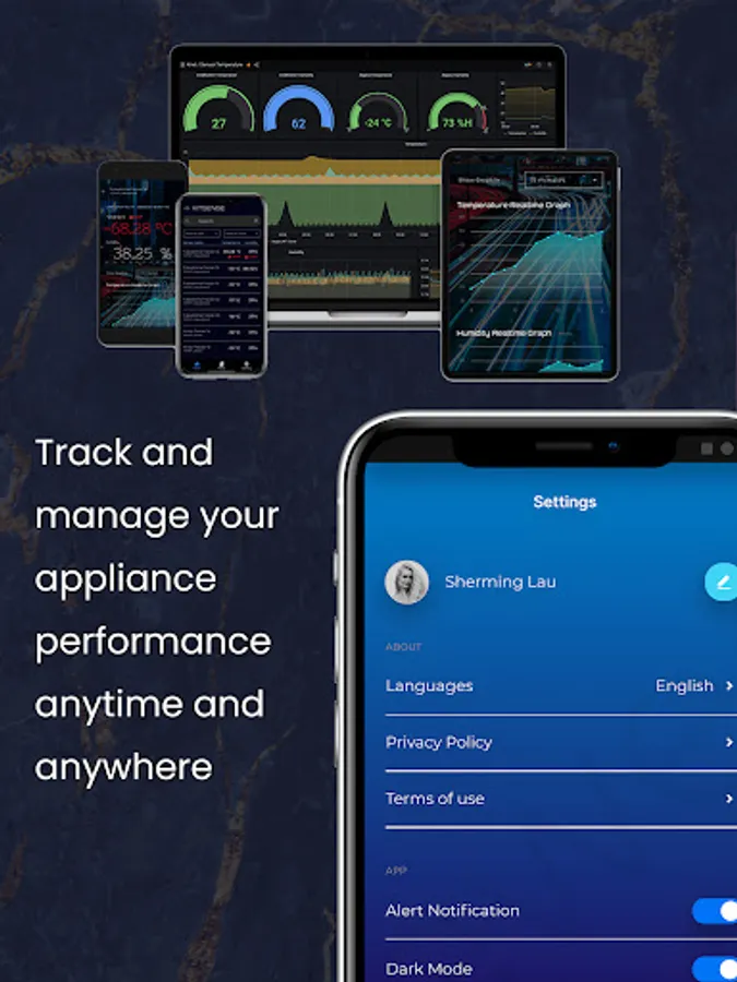 Track and manage your appliance performance anytime and anywhere through mobile app and web platform